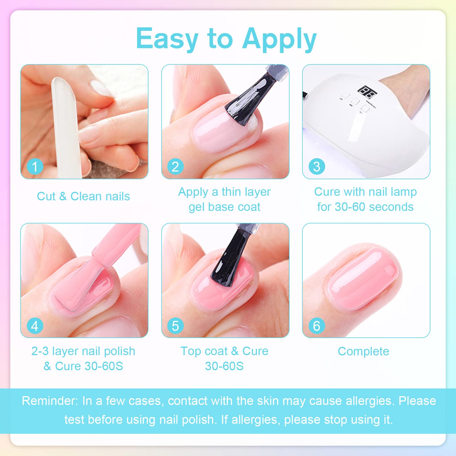 24-Stunden-Kundenservice von Shining She. Nur zur Anwendung auf Naegeln. Kontakt mit Augen, Mund und Haut vermeiden. Bei allergischen Reaktionen die Anwendung sofort abbrechen.