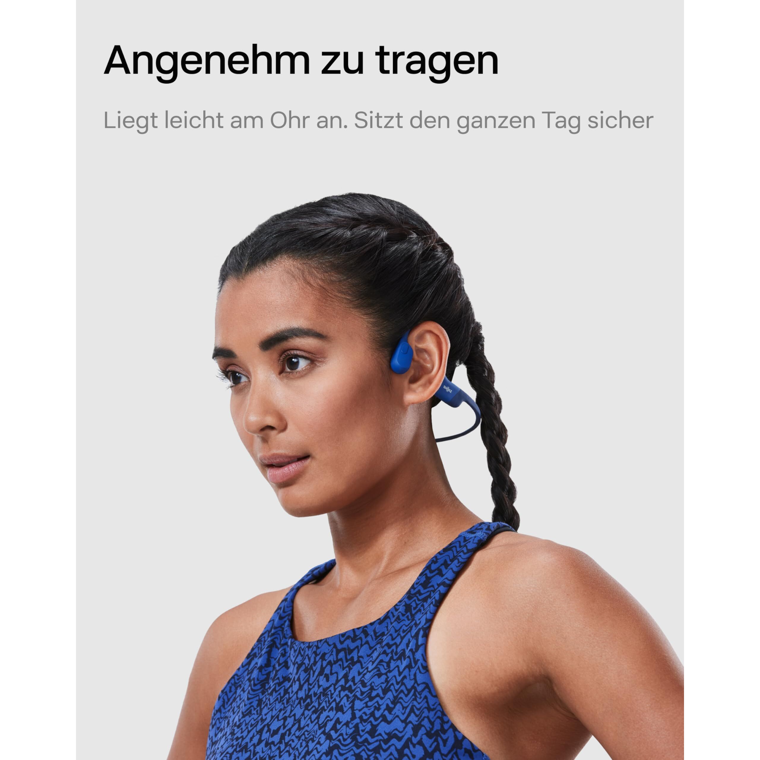 Über ShokzShokz, ein führender Hersteller von Open-Ear-Kopfhörern mit weltweit renommierter Knochenleitungs-Technologie, setzt weiterhin auf Innovation und schlägt durch innovatives Design und hochwertige akustische Erlebnisse einen neuen Lebensstil vor.Vollständige Titanpassform für sportliche StabilitätDas Kopfbügel-Titanrahmen sorgt für eine sichere Passform und Stabilität während jedes Trainings oder jeder Aktivität und ermöglicht es Ihnen, dynamische Bewegungen wie grosse Sprünge oder Yoga-Umkehrhaltungen selbstbewusst zu geniessen.NutzungsszenarienShokz kabellose Kopfhörer glänzen in verschiedenen Szenarien wie Spaziergängen, Pendelfahrten, Lernen, Arbeit, Fernarbeit, Besprechungen, Sport, Laufen, Radfahren, Yoga, Tennis, Freisprechanrufen, Telearbeit, Webkonferenzen, mobilem Gaming, Pendeln, Fernarbeit und mehr. Ideal für Geburtstage, Neujahr, Weihnachtsgeschenke.ProduktspezifikationenMaterialien: Silikon, Metall, NitinolMaximale Betriebsentfernung: 33 FussBluetooth-Version: Bluetooth 5.1Ladezeit: 90 MinutenNutzungszeit pro Ladung: 8 StundenLadeverfahren: USB-CEnthaltene Artikel1 OpenRun Ohrhörer, 1 USB-C Kabel, 1 Tragetasche, 1 Bedienungsanleitung, 1 Shokz Sport-Stirnband.24-Monate Garantie & 30-tägige kostenlose RücksendungenKaufen Sie Shokz-Produkte im offiziellen Shokz-Store für eine 24-monatige Produktgarantie ab dem Kaufdatum. Zusätzlich sind Rücksendungen und Rückerstattungen innerhalb von 30 Tagen aus jedem Grund möglich. Zögern Sie nicht, Ihren Kauf zu tätigen.