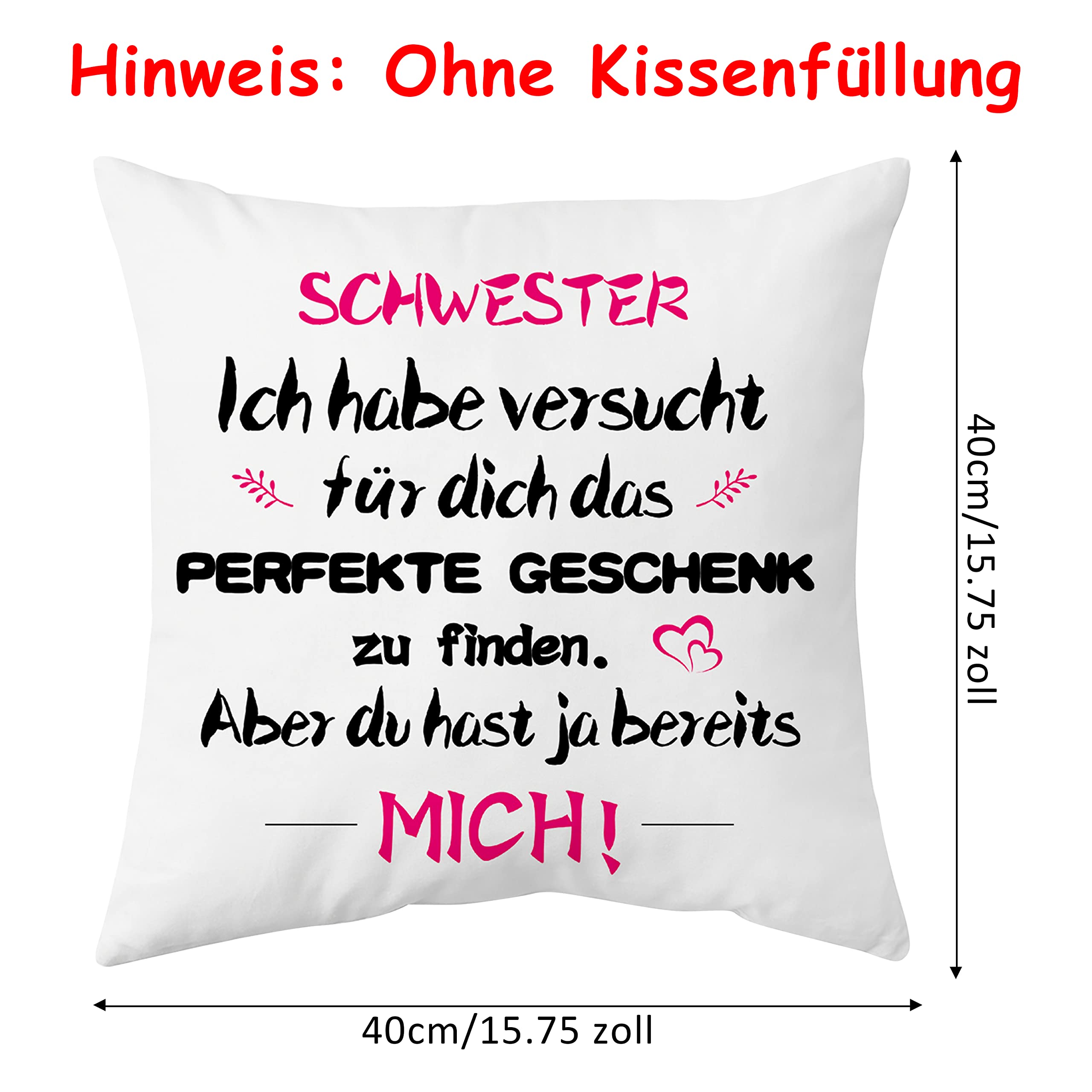 Shoppawhile Schwester Geschenk zum Geburtstag Geschenke für Schwester Weihnachten Geschenk Schwester Kissenbezug 40x40cm, Weiss