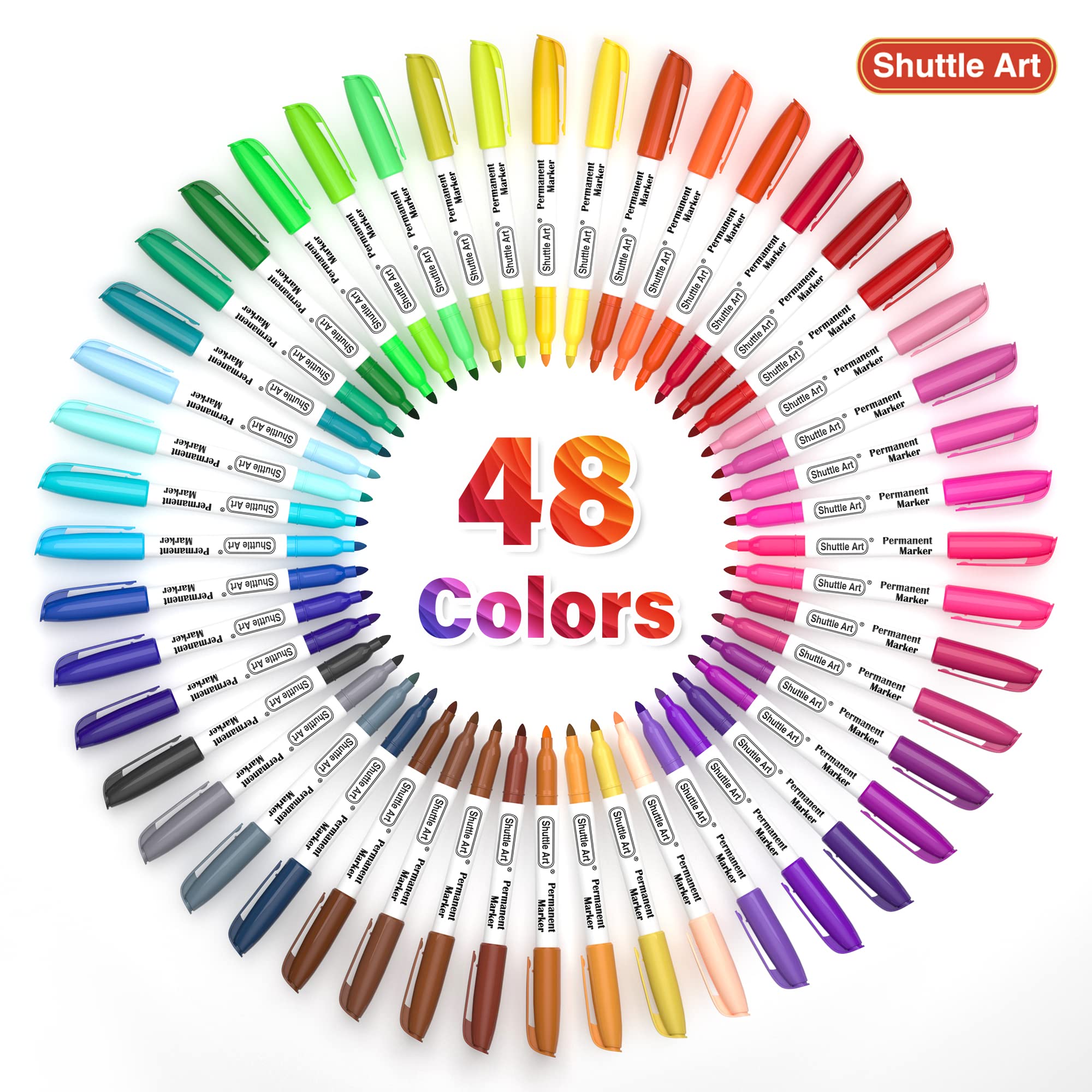 Permanent Marker, Shuttle Art 48- Farben- Markierungsstiftset mit feiner Spitze, für Kunststoff-, Holz-, Stein-, Metall- und Glasmaterialien zum Färben und Malen geeignet
