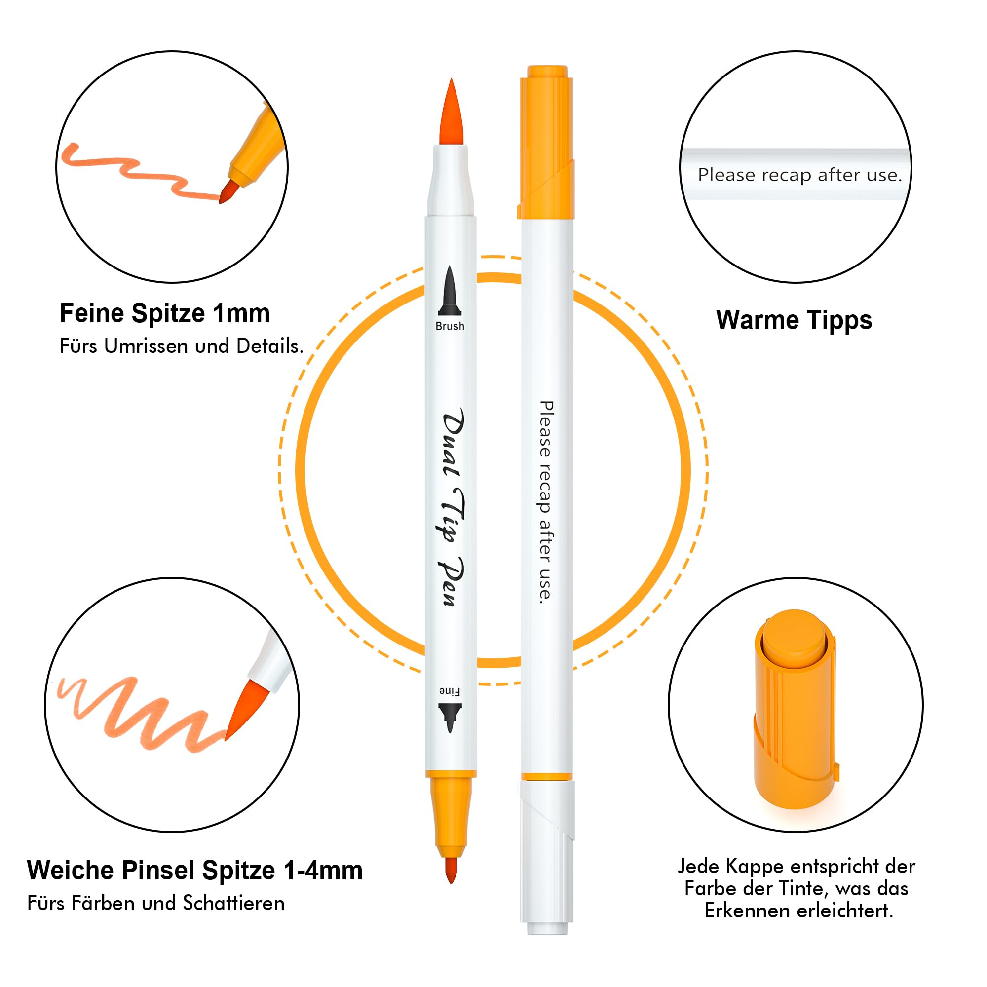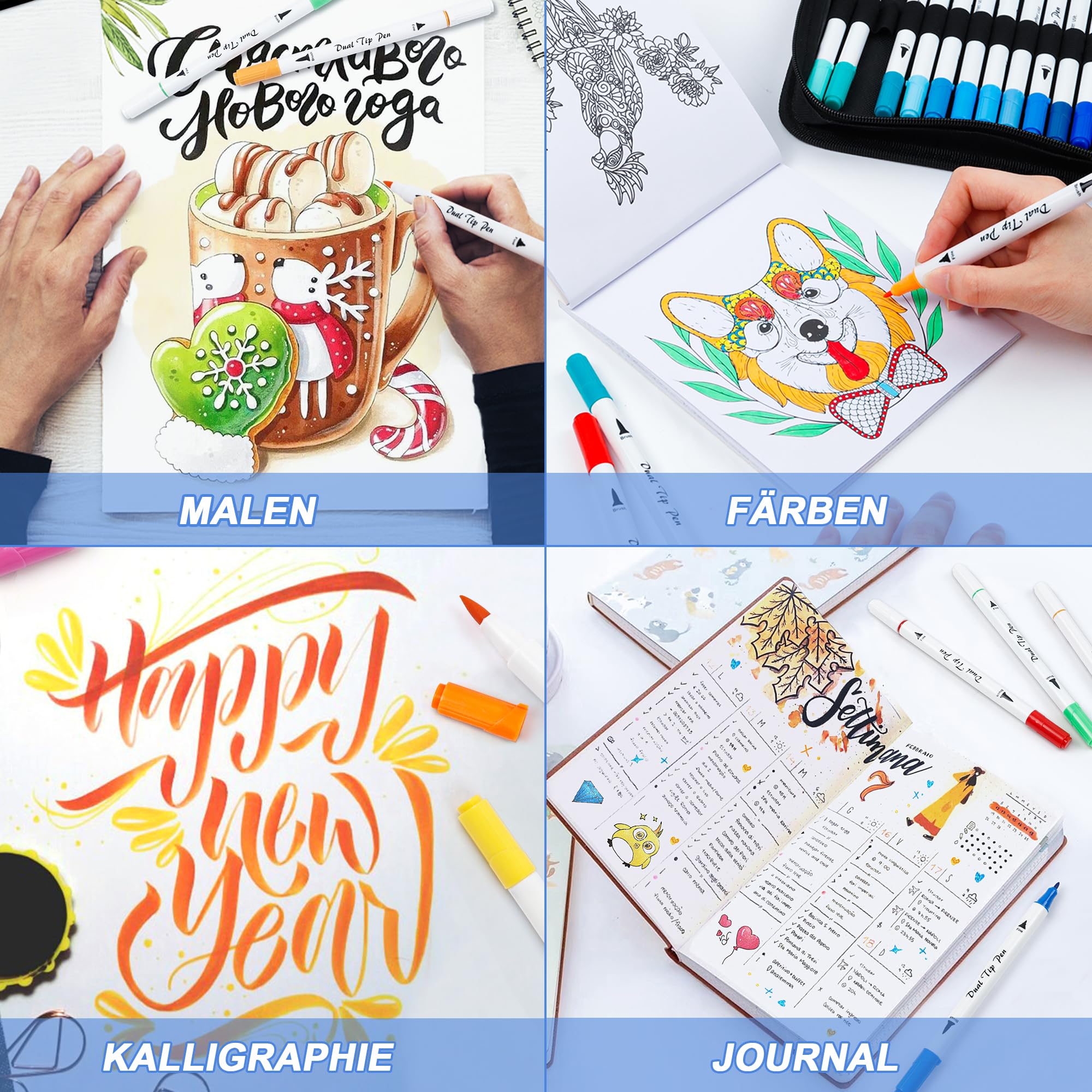 Dual Brush Pens, Shuttle Art 70 bunte doppelköpfige Pinselstifte mit weicher Spitze, zwei Schreibfedern: Fasermaler (1mm) und Fineliner(1-4mm), für Kinder und Erwachsene mit 1 Malbuch zum Schreiben