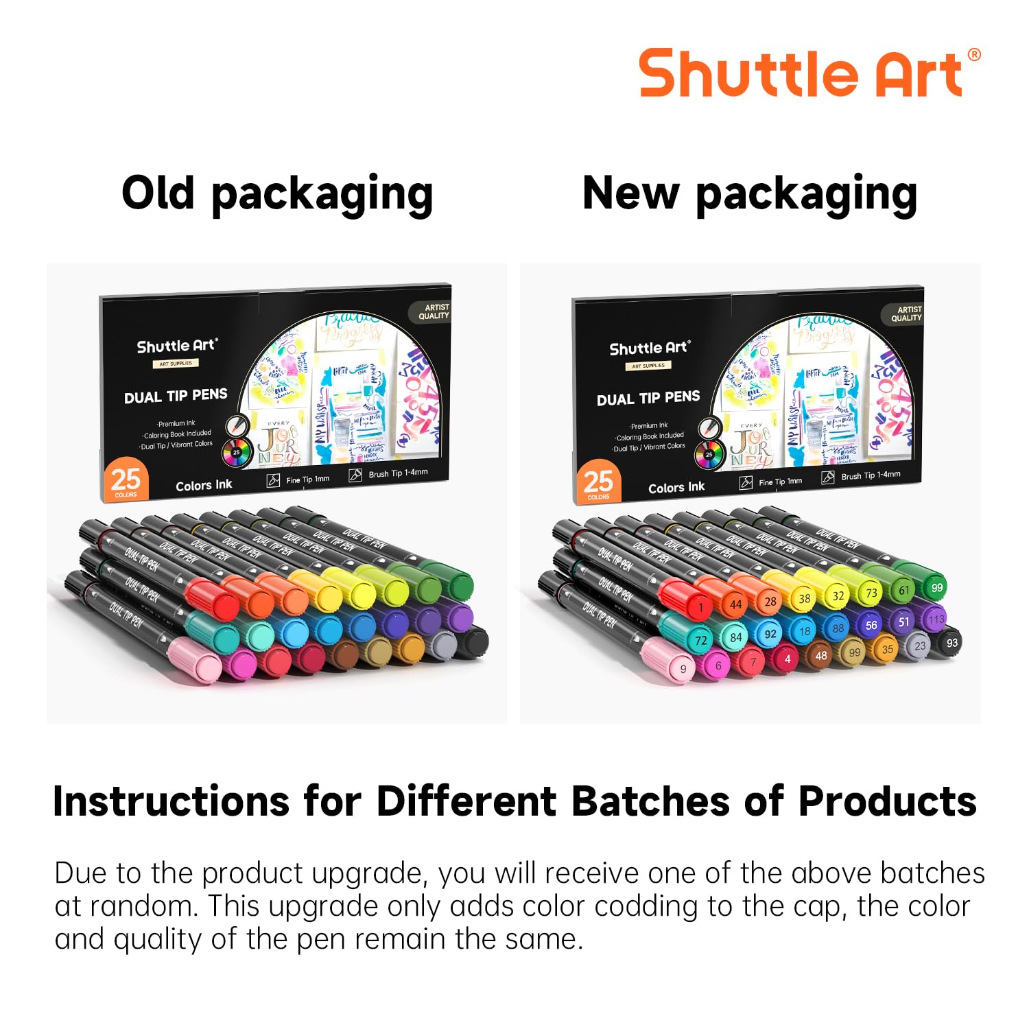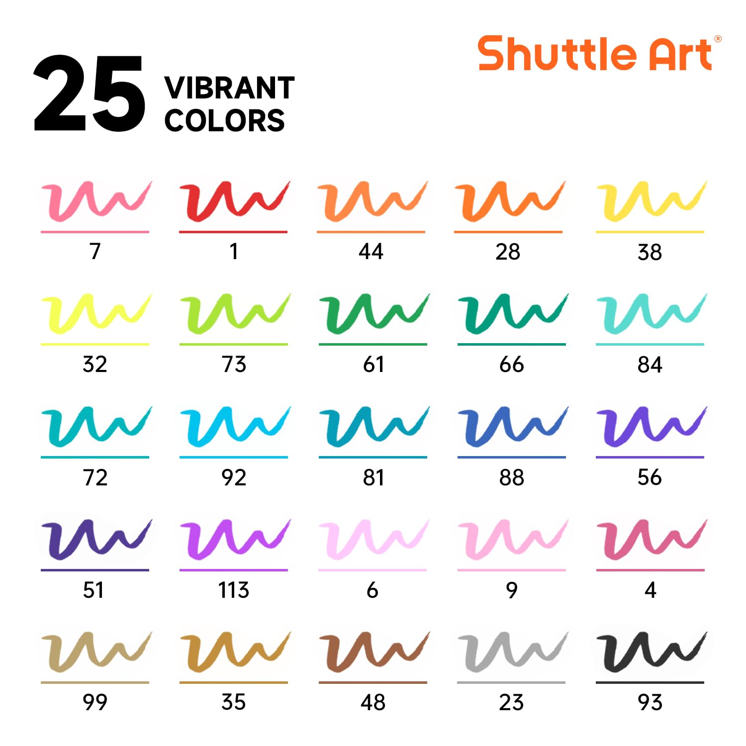 Shuttle Art Dual Brush Pen Set, 25 doppelseitige Pinselstifte, Filzstifte Dicke und Dünne, Aquarellstifte mit Malbuch für Kinder, Filzstifte für Erwachsene zum Malen Handlettering, Kalligraphie Stifte
