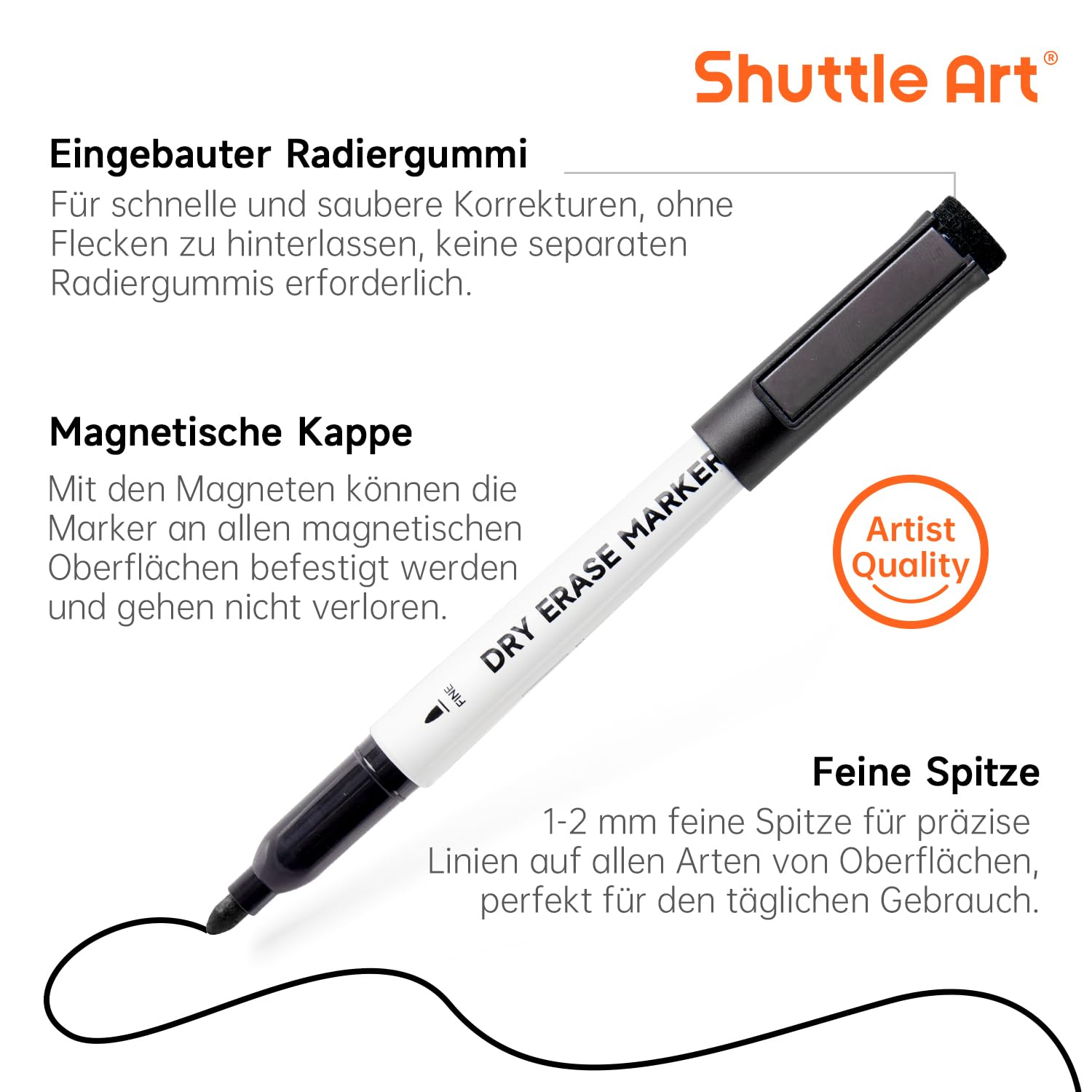 Whiteboard-Marker, Shuttle Art 15 schwarze Magnet-Whiteboard-Marker (mit Radiergummi), abwischbar, Whiteboard-Marker mit feiner Spitze, für Whiteboards, magnetischen Schreibtafeln, Spiegel geeignet