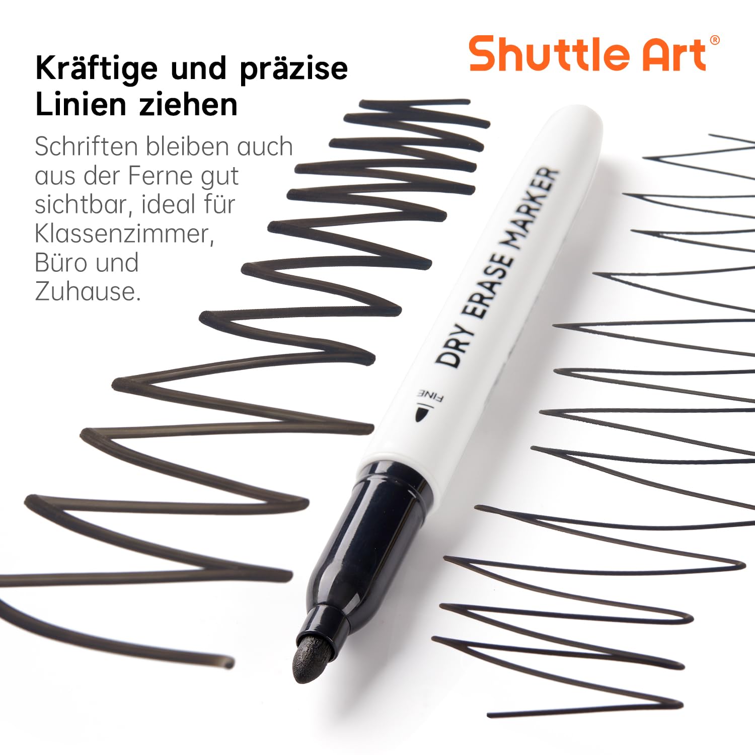 Shuttle Art Whiteboard Marker schwarz, 15 magnetische whiteboard stifte abwischbar schwarz, Folienstift trocken abwischbar fein, für Whiteboards, magnetische Schreibtafeln, Spiegel geeignet