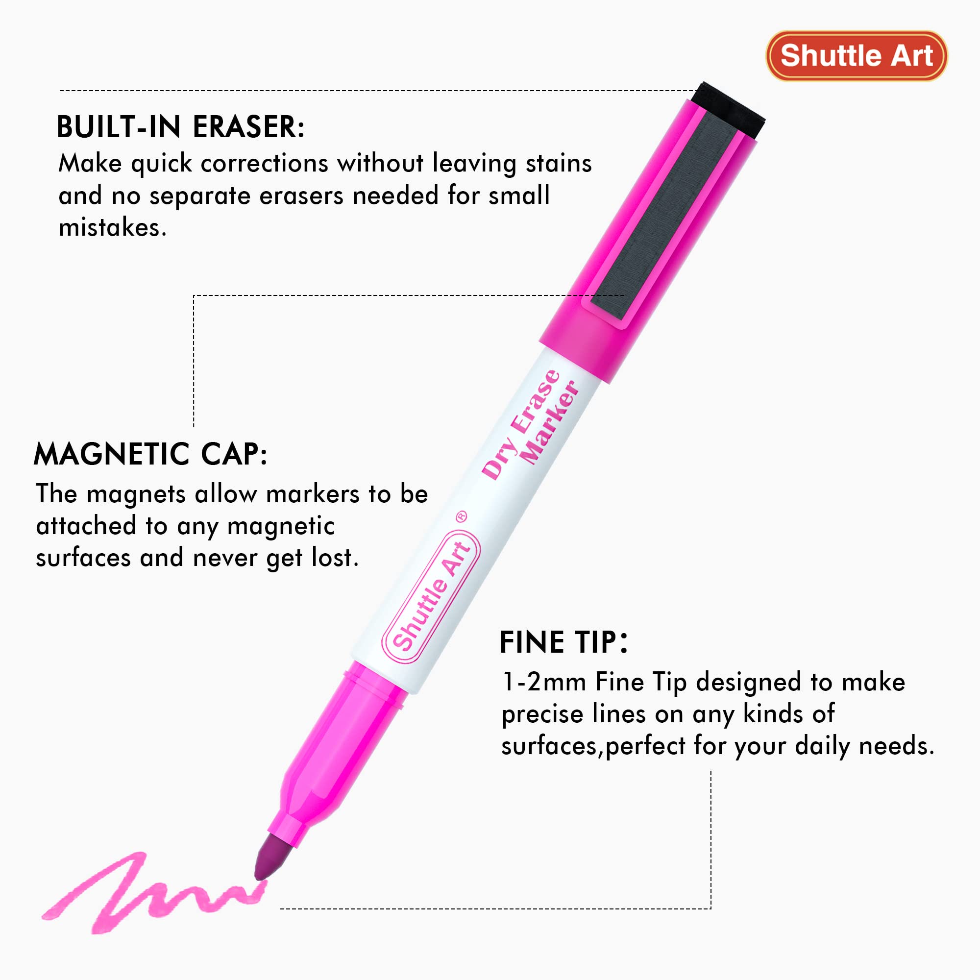 Shuttle Art Whiteboard Stifte, 60 Magnet-Whiteboard-Marker in 15 Farben mit feiner Spitze und Radiergummi, abwischbar, grosse Menge, auf Whiteboards, magnetischen Schreibtafeln