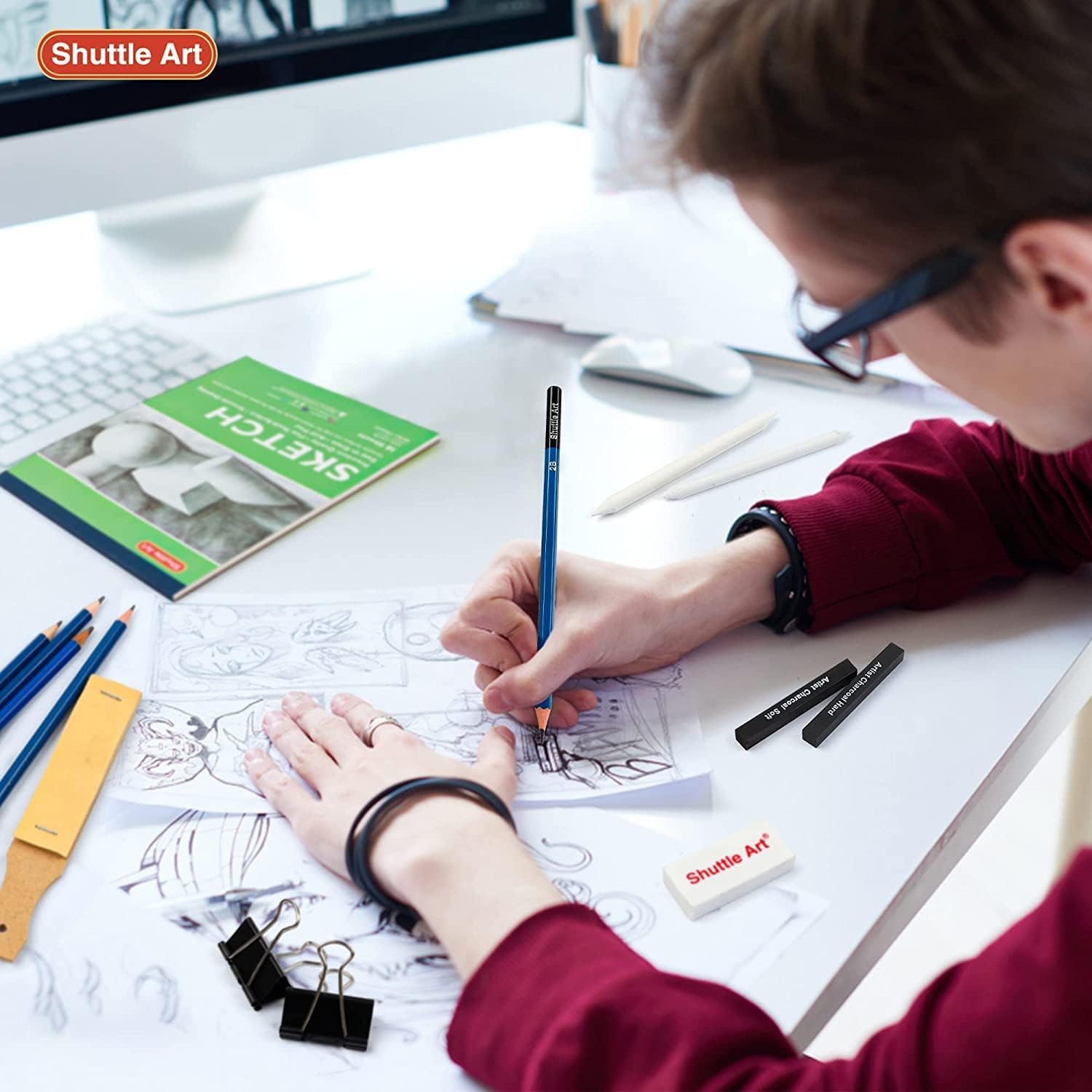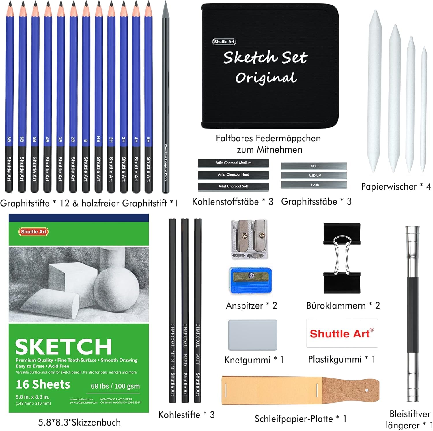 Shuttle Art Zeichenset, 37 teiliges professionelles Zeichenstifte Set mit Zeichenblock, Federmappe, Graphitstift, Kohlestift, Zeichenkohle und komplettem zeichnen Zubehör für Erwachsene und Kinder