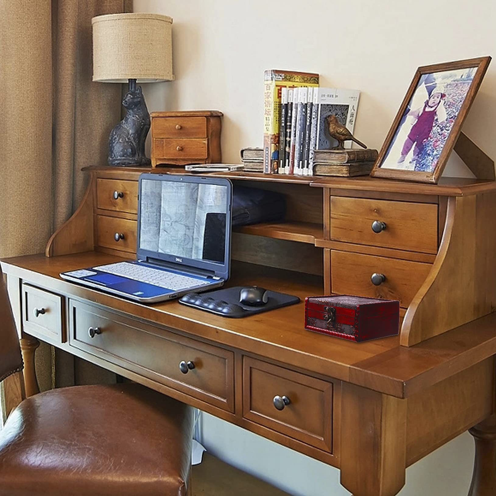 SiCoHome Kleine Truhe Box Vintage Taro Kartenbox Schmuckaufbewahrung Organizer Holzkiste Schatztruhe Dekobox
