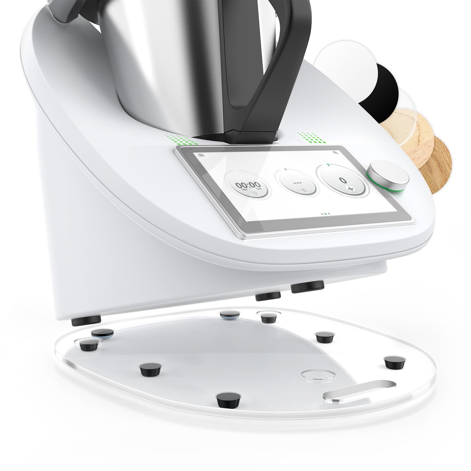 • ✅3 speziell gestaltete Aussparungen: Passen perfekt zu den Füssen von Thermomix TM6 und TM5, sodass die Maschine immer stabil auf dem Brett steht.