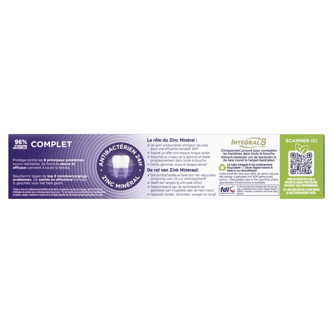 • Die Tube und der Karton der Signal Integral 8 Complet Zahnpasta sind vollständig recycelbar – zur Aufbewahrung in Ihrem Sortierbehälter