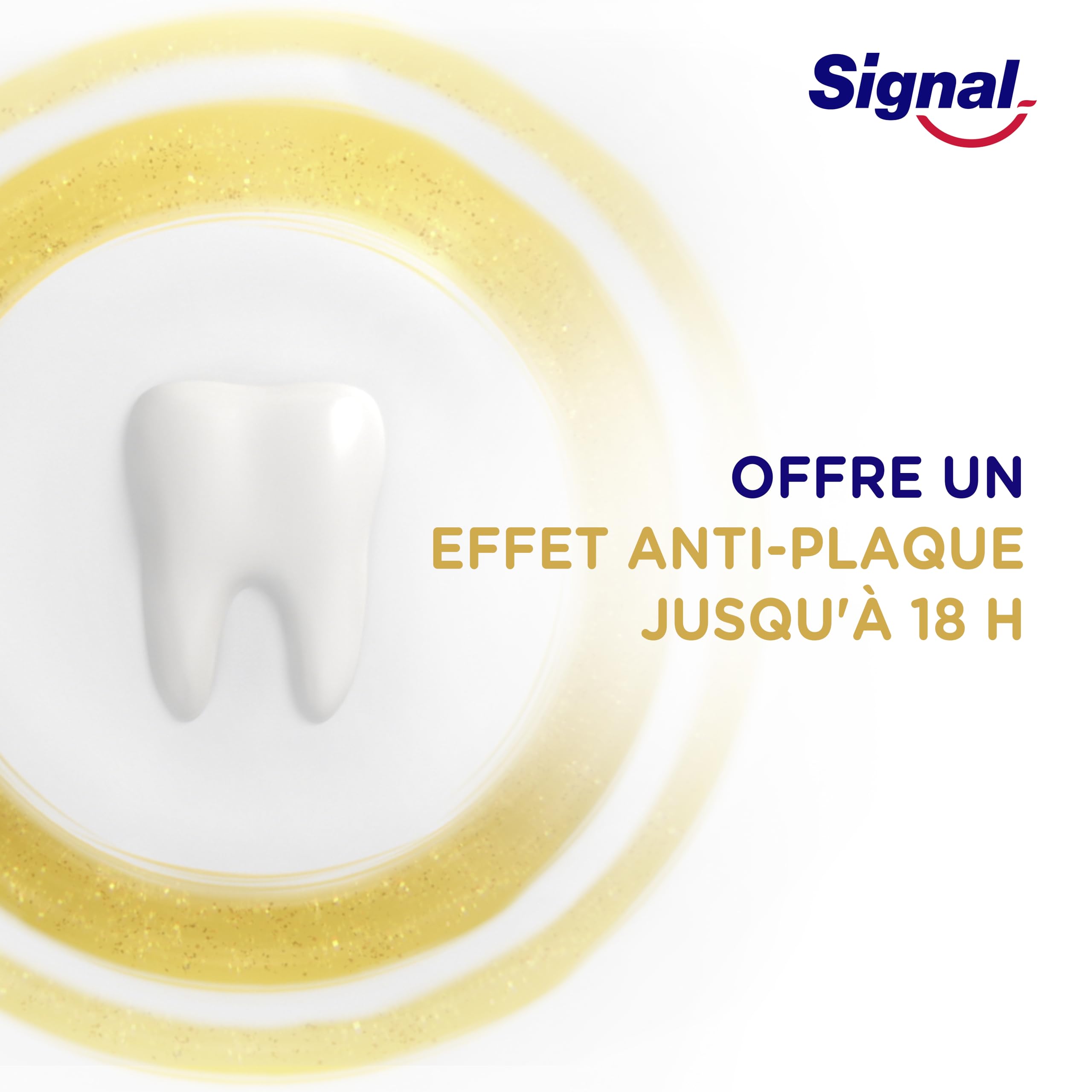 Die mit natürlichen Wirkstoffen angereicherte Formel der Zahnpasta Signal Integral 8 Complet schützt den gesamten Mund (Zähne, Zahnfleisch, Wangen und Zunge) und ist für die ganze Familie geeignet. Es bietet 8 Aktionen für umfassenden Schutz: Kariesschutz, verstärktes Zahnfleisch, verstärkter Zahnschmelz, weisser Atem, Plaque, Anti-Kalk und antibakteriell. Seine Formel besteht zu 96 % aus Inhaltsstoffen natürlichen Ursprungs und enthält Mineralzink, einen antibakteriellen Wirkstoff natürlichen Ursprungs für eine Wirksamkeit von 24 Stunden. Sie sorgt für eine langanhaltende Plaque-Wirkung. Der Karton und die Tube der Signal Integral 8 Zahnpasta sind vollständig recycelbar – einfach in Ihrem Sortierbehälter aufbewahren. Entdecken Sie auch die weisse Zahnpasta Signal Integral 8 Weiss für eine verstärkte Weisswirkung. Wir glauben, dass Ihr Lächeln Ausdruck Ihrer Persönlichkeit und Ihres Selbstbewusstseins ist. Unsere Mission ist es, die Mundgesundheit aller zu verbessern, damit jeder von uns die Kraft seines Lächelns entfesselt. Signal begleitet die Franzosen seit 1961, um ihnen schon in jungen Jahren die richtigen Gesten zu vermitteln, und empfiehlt, die Zähne zweimal täglich zu putzen und die Zahnbürste alle 3 Monate zu wechseln. Wir sind auf den Schutz des Planeten aufmerksam und ergreifen Massnahmen, um die Umweltbelastung unserer Produkte zu begrenzen. In Zusammenarbeit mit TerraCycle haben wir ein kostenloses Recycling-Programm gestartet, um Ihre Zahnbürsten und Zahnpastatuben ein zweites Leben zu erwecken. Mit Signal zählt jedes Lächeln In-vivo-Studie zur Reduzierung von Bakterien auf Zähnen, Zahnfleisch, Wangen und Zunge, nach 14 und 28 Tagen zweimal täglicher Anwendung mit Bürsten