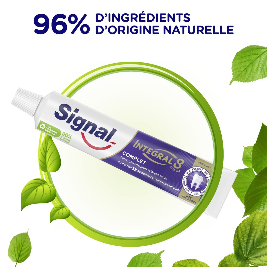 SIGNAL - Zahnpasta Integral 8 Komplette präbiotische Wirkung – 3 x effektiver Rundumschutz – 96% Inhaltsstoffe natürlichen Ursprungs (4 x 75 ml)