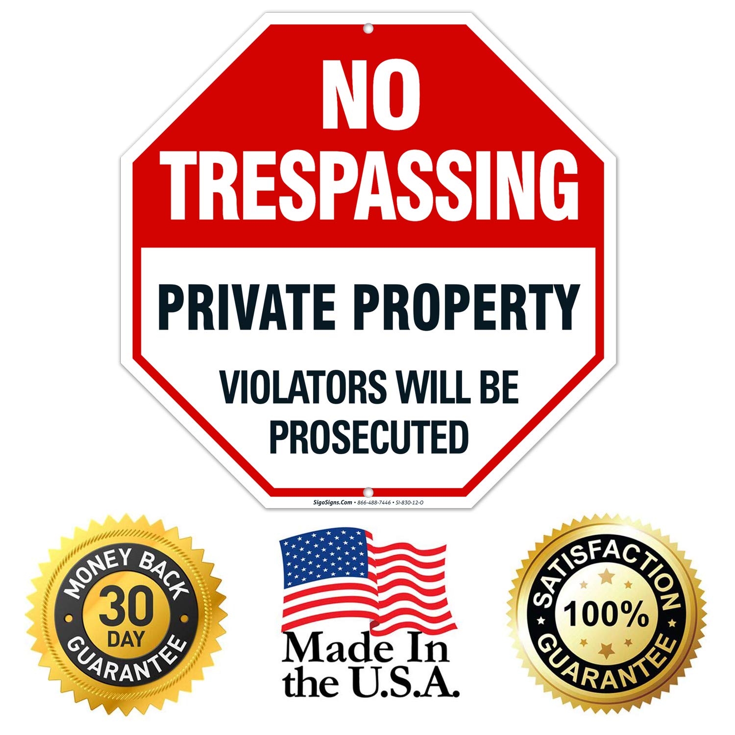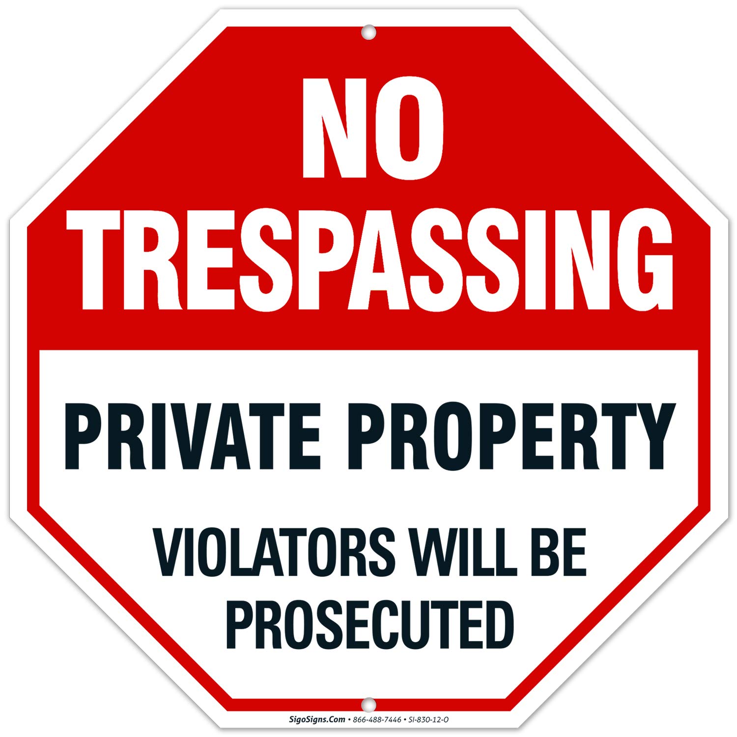 Sigo Signs No Trespassing Sign - Privateigentum-Zeichen - Violators Will Be Legend Prosecuted - grosse 12 X 12 Octagon Rust Gratis 0,40 Aluminum Sign