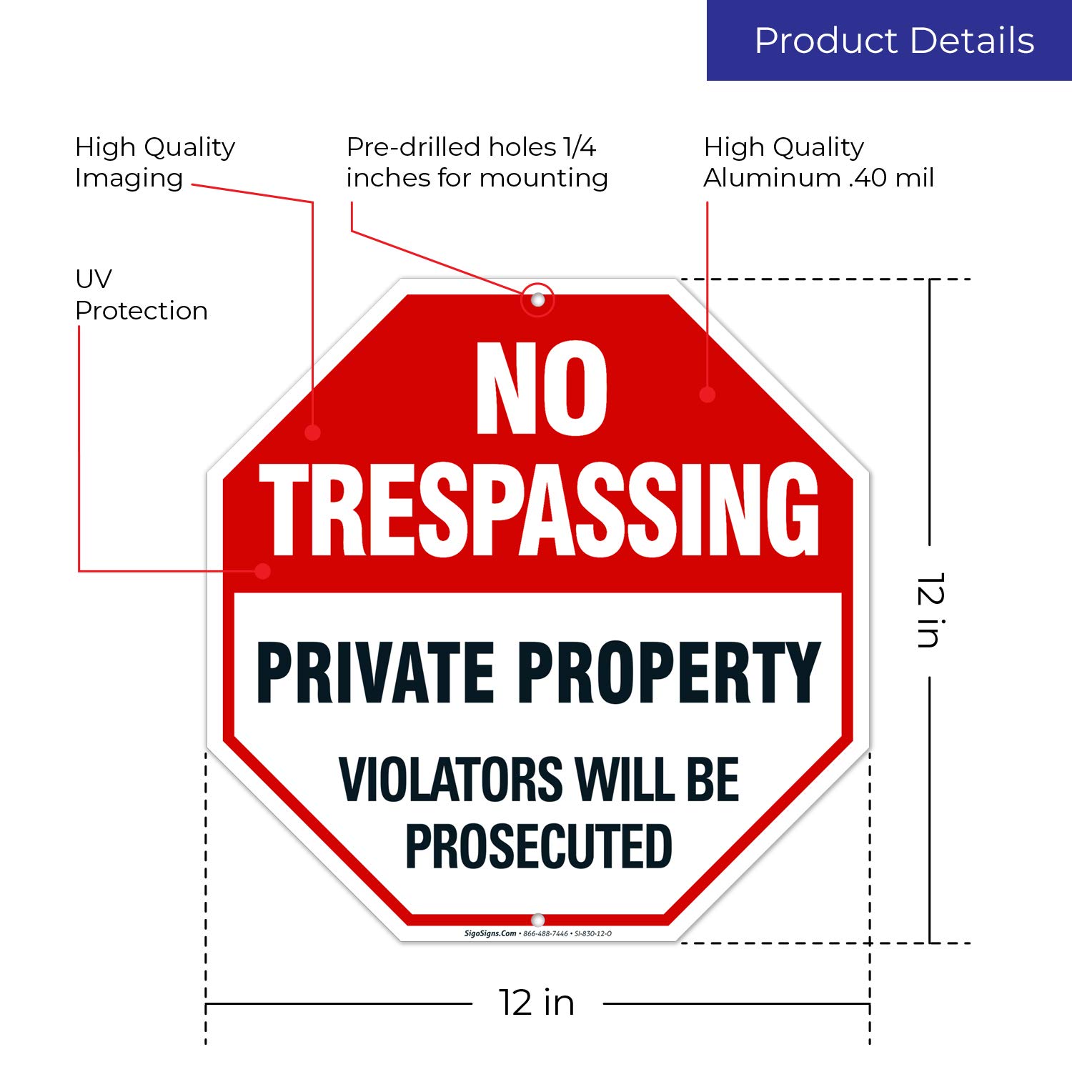 Sigo Signs No Trespassing, Privat Anmelden Immobilien - No Trespassing Treter sind Jedes Zeichen strafrechtlich verfolgt mit bis meisten Qualität und Sorgfalt in unserer Anlage hergestellt wird. Sie sind mit hochauflösenden Maschinen gedruckt. Sie haben Löcher vorgebohrt für die schnelle und einfache Installation. Dieses Zeichen ist ein 40 mil dickes schweres Aluminium. Im Gegensatz zu Stahlschildern, unsere Aluminium-Schilder rosten nicht. Schilder haben vier Löcher, eine in jeder Ecke. Schilder können mit Schrauben oder Nägeln befestigt werden. Jede Ecke ist für eine längere Lebensdauer und eine einfachere Handhabung abgerundet. Aluminiumschilder haben einen Betriebstemperaturbereich von 20 bis 168 Grad f. Anmelden dauert 7 und Jahr das Leben im Freien. Sie haben grosse Wasser- und Chemikalienbeständigkeit. Typische maximale Temperatur 168 Grad f. Halterungen mit Schrauben oder Klammern. Misst 10 Zoll Breite x 14 Zoll Höhe. Schöne Farbkombination.