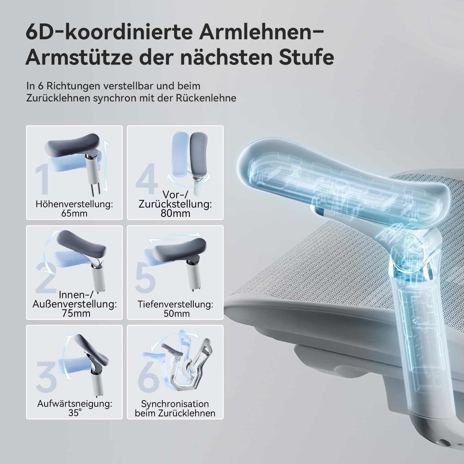 SIHOO Doro C300 Pro Ergonomischer Bürostuhl mit ultraweichen 6D-Armlehnen, dynamischer Lendenwirbelstütze, Sitztiefenverstellung und verstellbarer Rückenlehne, Schreibtischstuhl für Home Office (Weiss)