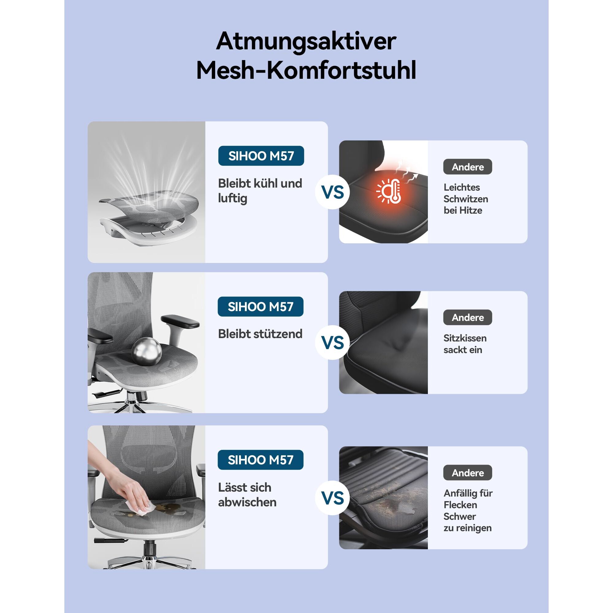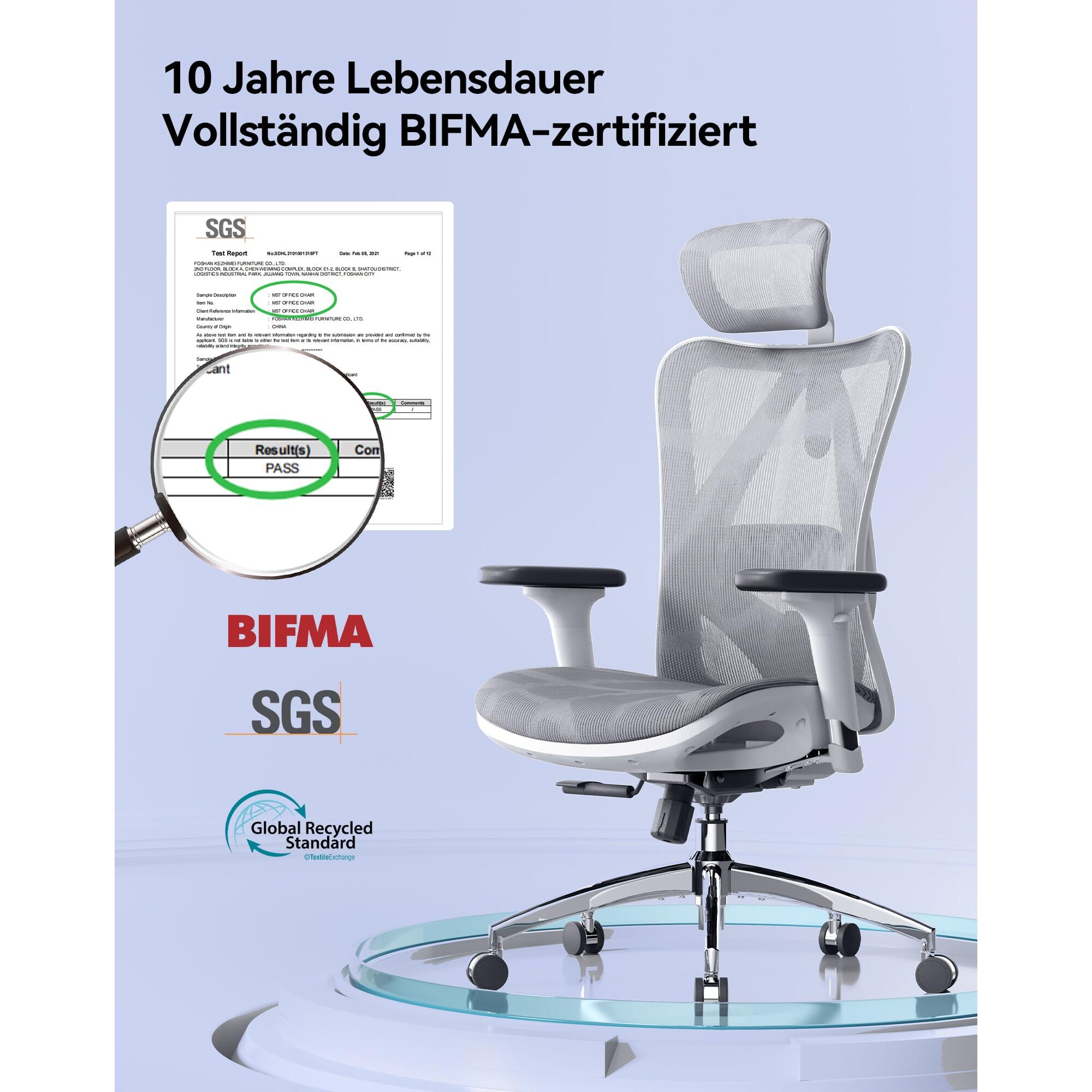 SIHOO M57 Ergonomischer Bürostuhl mit 3-Wege-Armlehnen, Lendenwirbelstütze und Verstellbarer Kopfstütze Hohe Rückenlehne Neigungsfunktion