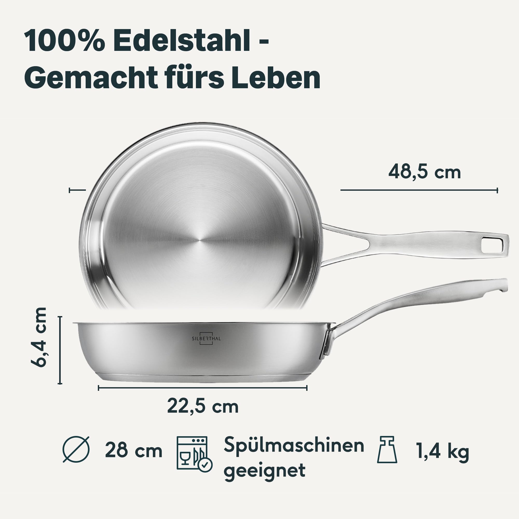 SILBERTHAL Edelstahl Pfanne Unbeschichtet - Induktion - Profi Bratpfanne 28cm - Röstaromen - Ofenfest