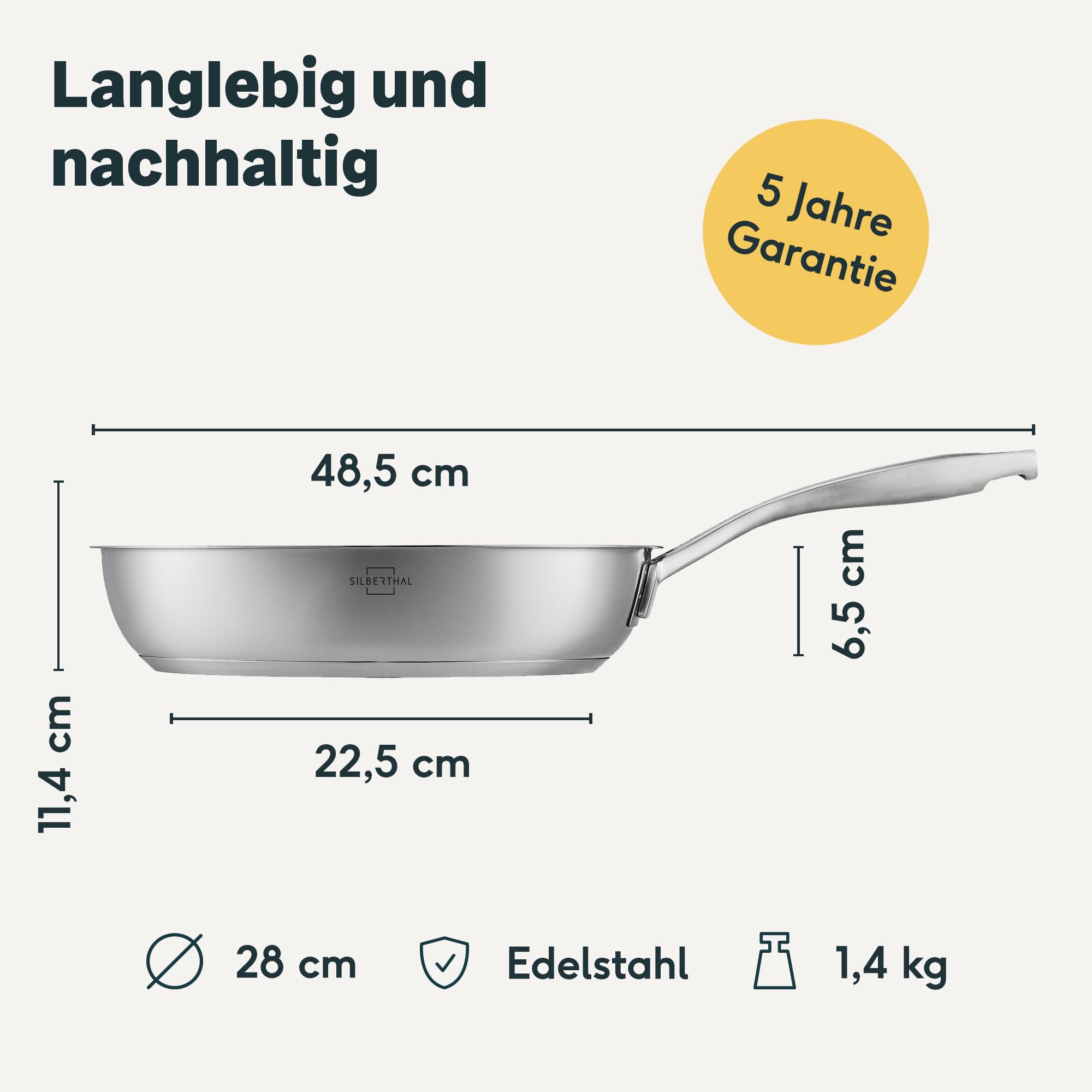 Kochen ist mehr als ein täglicher Routineakt – es ist Genuss, Kreativität und ein schönes Miteinander. Unsere unbeschichtete 28‑cm‑Pfanne verwandelt jede Brateinheit in ein genussvoll‑spielerisches Erlebnis. Dank des dreilagigen Bodens verteilst du Hitze schnell und gleichmässig – so entsteht die perfekte Kruste beim Anbraten. Geeignet für Induktion, Gas, Elektro und Ofen bis 400 °C – ohne Leistungsabfall. Der griffige, kühle Stiel und der Schüttrand machen Giessen präzise und sauber. Hochwertiger Edelstahl 18/10, BPA‑ und LFGB‑zertifiziert, keine Plastikverpackung – wir setzen auf Nachhaltigkeit und Wertigkeit. Für alle, die im Alltag Genuss mit qualitativer Küche verbinden wollen.
