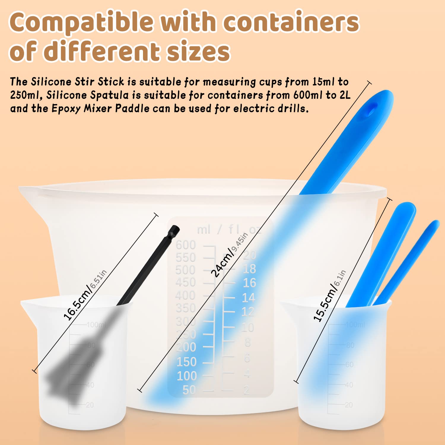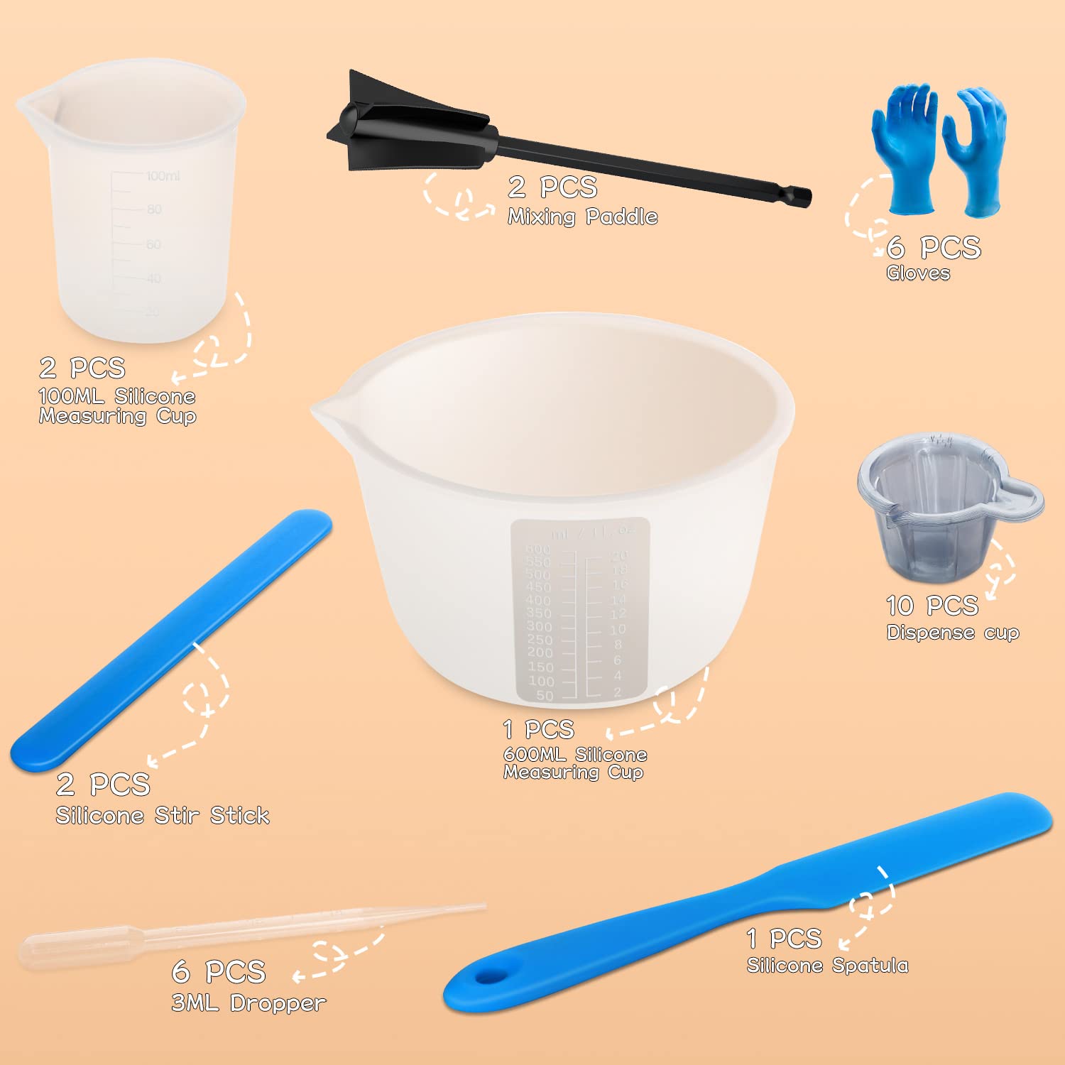 Silikon Messbecher Epoxidharz, 600&100ml Mischbecher, Rührstäbchen, Silikonspatel, Mischpaddel, Dosierbecher, Pipetten, Handschuhe von Epoxidharz, Schmuckherstellung,leicht zu reinigen