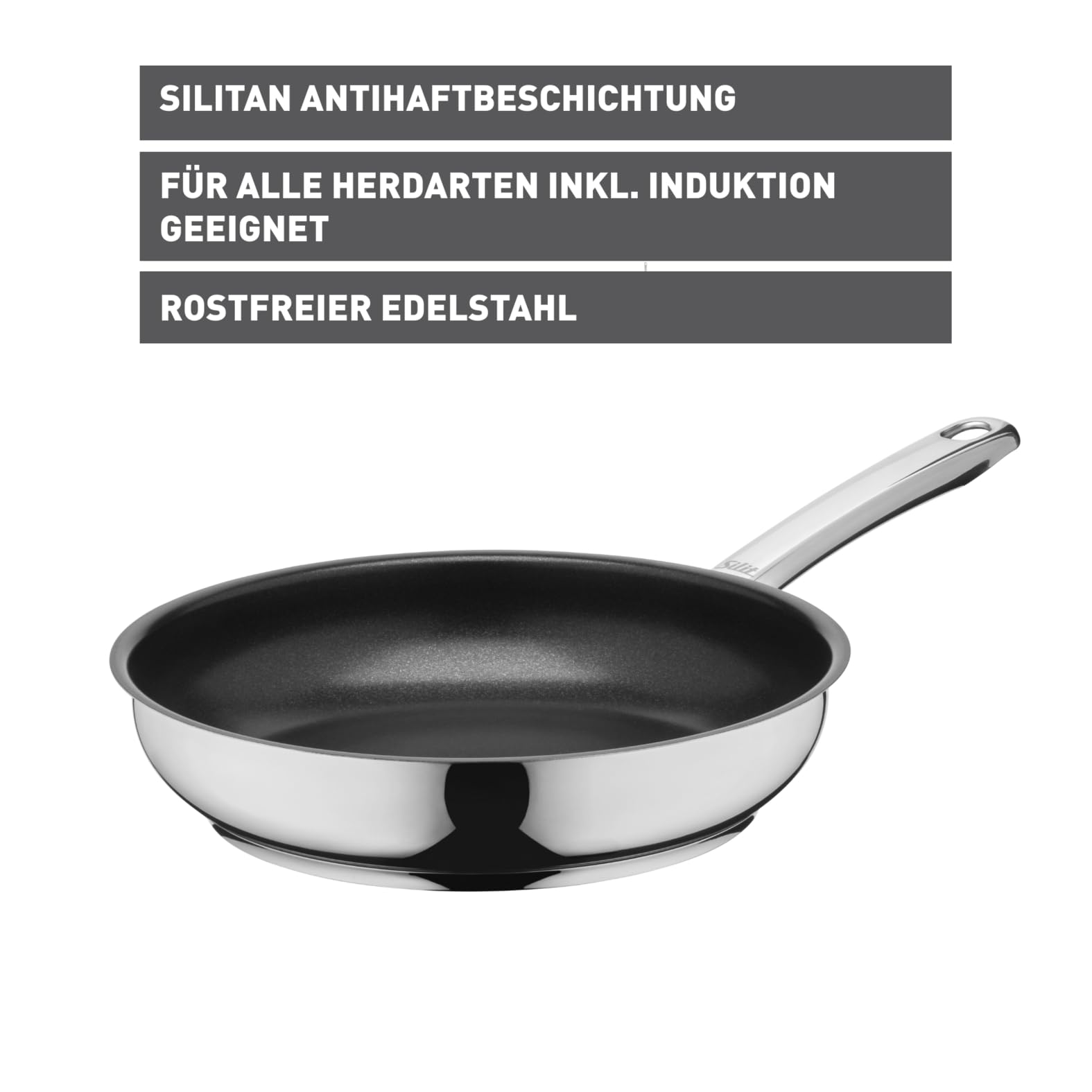 Silit Calabria Bratpfanne 24 cm Induktion, Edelstahlpfanne beschichtet, Edelstahlgriff, Antihaftbeschichtung, backofenfest bis 260 Grad, für alle Herdaten geeignet, für schonendes Braten