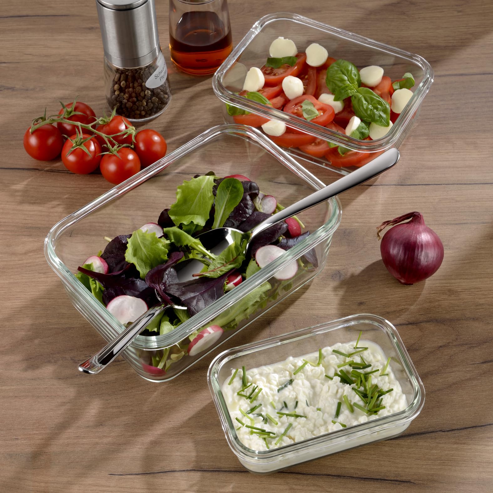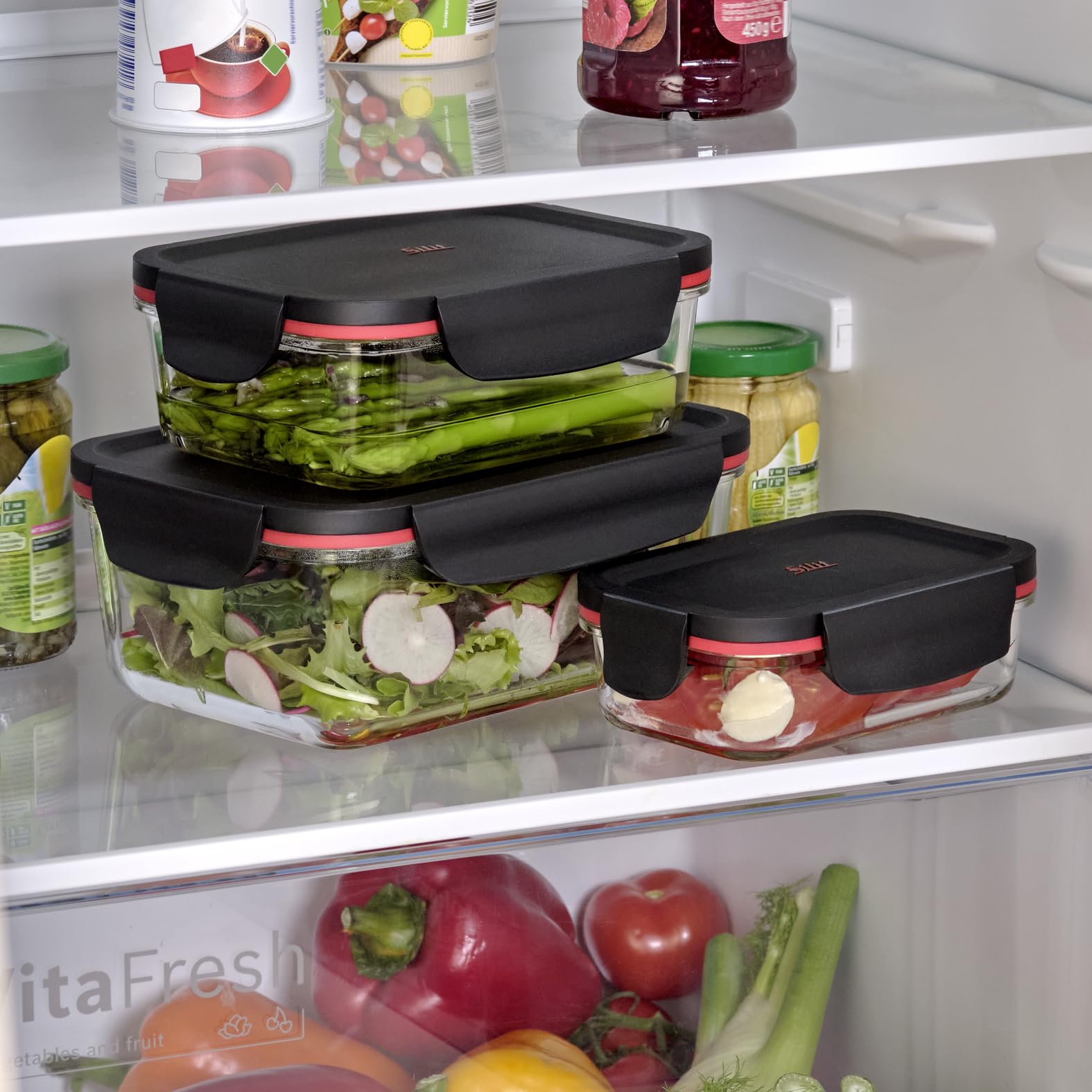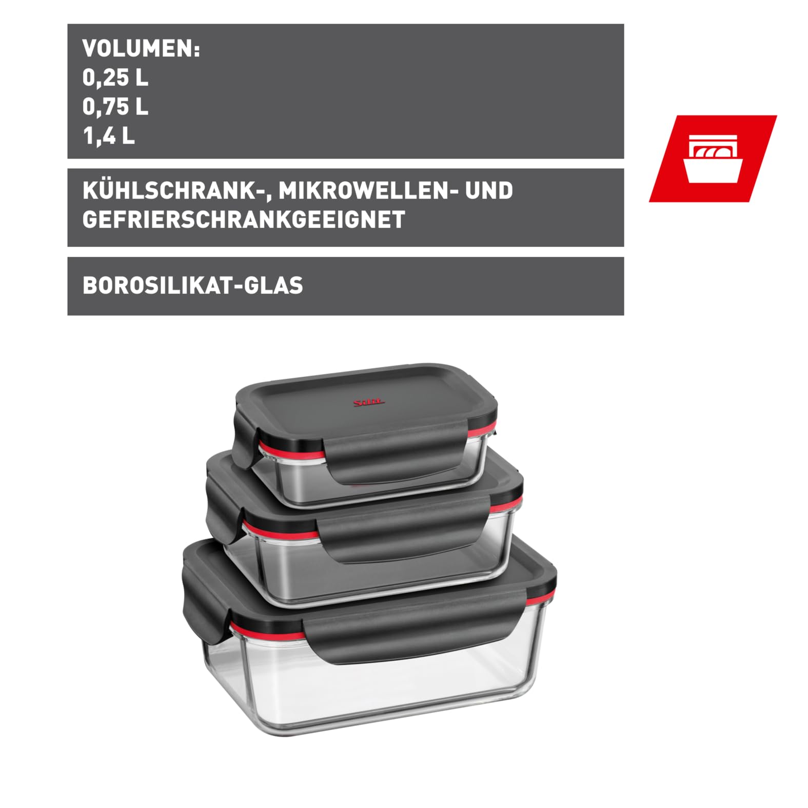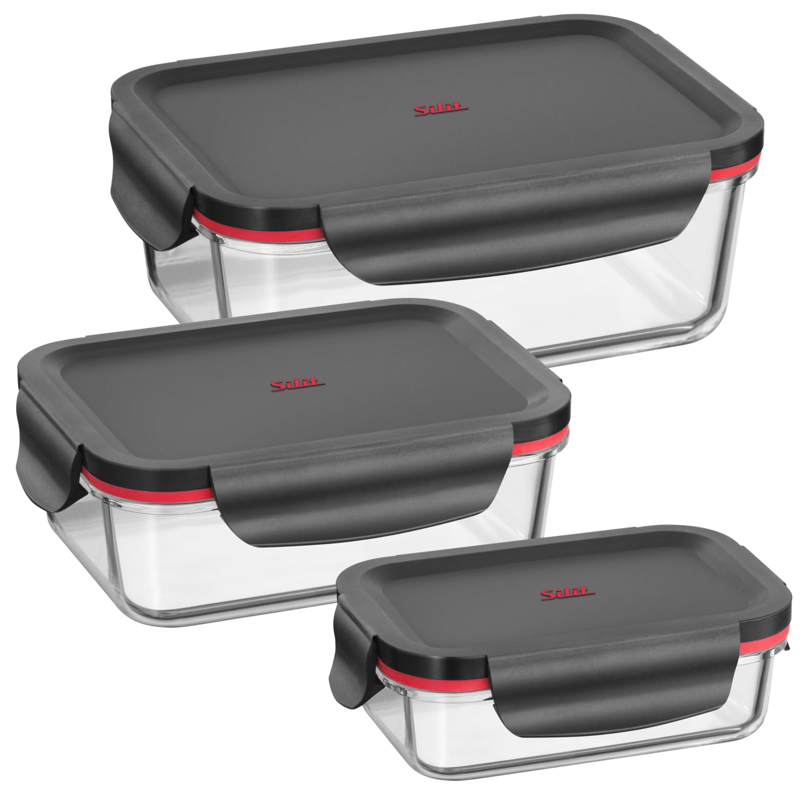 Silit Storio Vorratsdose Set 3-teilig, Glasbehälter mit Deckel luftdicht, Frischhaltedosen, spülmaschinengeeignet, mikrowellengeeignet, backofengeeignet ohne Deckel