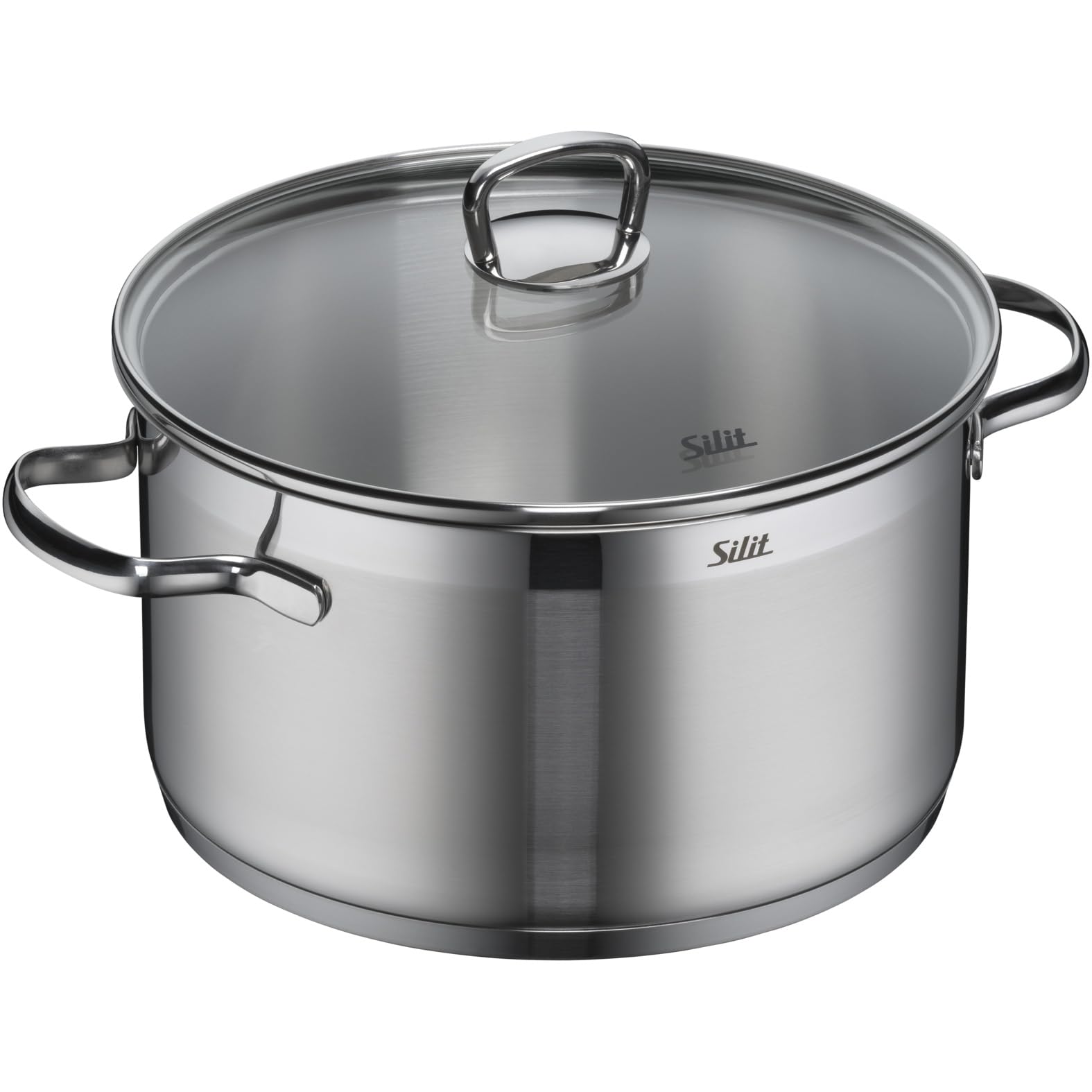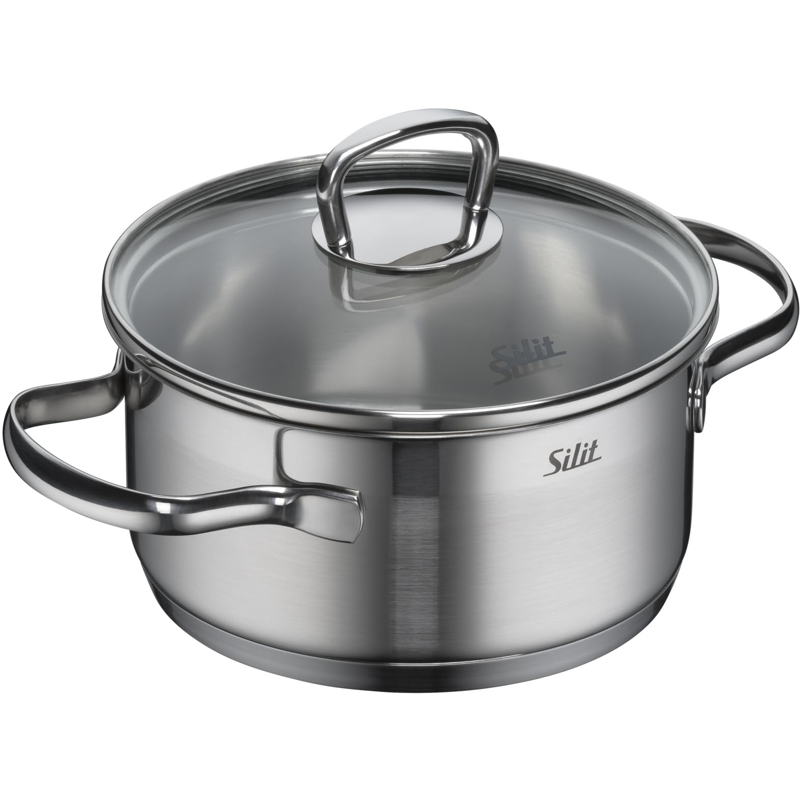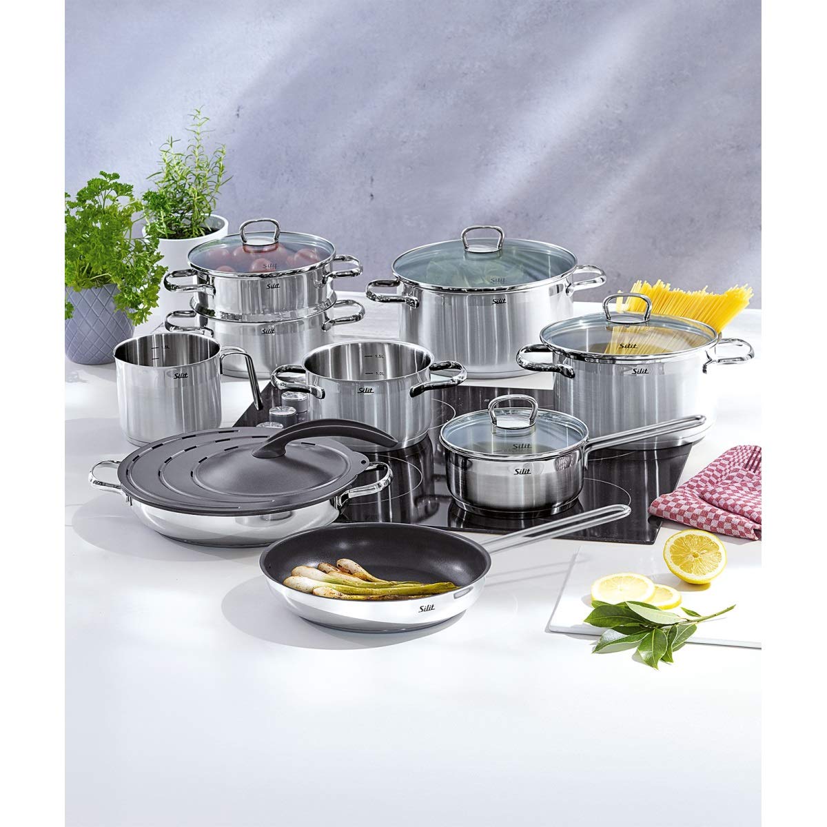 Die Induktionskochtöpfe der Serie Toskana von Silit sind ideal zum wasserarmen energiesparenden Kochen. Durch ihre ergonomisch geformte Griffe aus satiniertem Edelstahl und ihr modernes Design passen sie in jede Küche. Die Töpfe sind für alle Herdarten geeignet inklusive Induktion. Darüber hinaus kann man die Silit Töpfe auch in den heissen Backofen geben. Der rundum verkapselter SilitTherm-Allherdboden verteilt die Wärme gleichmässig und speichert sie lange. Der praktische Deckel aus hitzebeständigen Güteglas ermögliche es, auch bei aufgelegtem Deckel, beim kochen zuzuschauen. So sieht man immer wie weit man mit Kochen ist und ob man etwas machen muss. Die Töpfe sind mit einem ausgestellten Schüttrand versehen, welcher für problemloses Ausgiessen sorgt.Wer gerne und regelmässig kocht, braucht verschiedene Töpfe, wobei sich für die Standardausstattung ein paar Grundformen bewährt haben. Diese kombiniert Silit in unterschiedlichen Grössen zu einer vielfältigen Auswahl, wobei Fleisch- und Bratentöpfe in keinem Set fehlen dürfen. Drei-, vier- oder fünfteiligen Topf-Sets beinhalten meistens Fleisch-, Gemüse- und Bratentöpfe mit Deckel und eine Stielkasserolle ohne Deckel. In den Fleischtopf passt alles rein, was zum Kochen viel Flüssigkeit braucht, da sein Rand besonders hoch ist, spritzt beim Braten von Fleisch nichts heraus und auch Nudeln, Kartoffeln und Gemüse nimmt er ohne Probleme auf. Der Bratentopf ist eine Kombination aus Pfanne und Fleischtopf, der Rand ist höher als bei der Pfanne, somit spritzt beim Braten kaum Fett heraus. Zugleich ist der Rand niedriger als beim Fleischtopf, damit die Flüssigkeit schneller verdampft und Sie das Fleisch/Gemüse problemlos wenden können. Silit Topf Sets lassen sich jederzeit mit Einzeltöpfen oder Einzelpfannen aus den Kochgeschirr-Serien ergänzen. Wer sich schwer entscheiden kann, geht nach persönlichen Kochvorlieben und sucht nach der passenden Topfgrösse zum Herd. Silit Topfsets lassen sich jederzeit mit Einzeltöpfen aus den Kochgeschirr-Serien ergänzen.