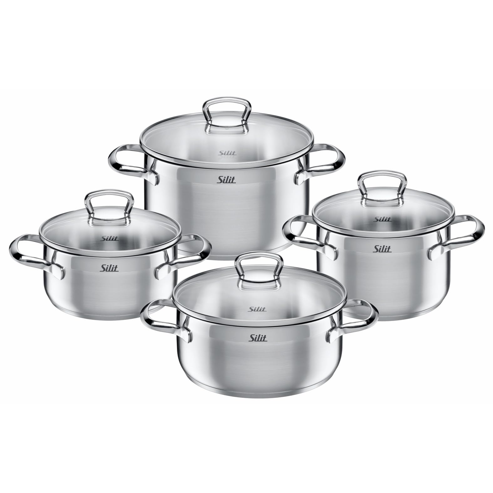 Silit Toskana Topfset Induktion 4-teilig, Kochtopf Set mit Glasdeckel, Edelstahl teilmattiert, Induktions Töpfe Set unbeschichtet
