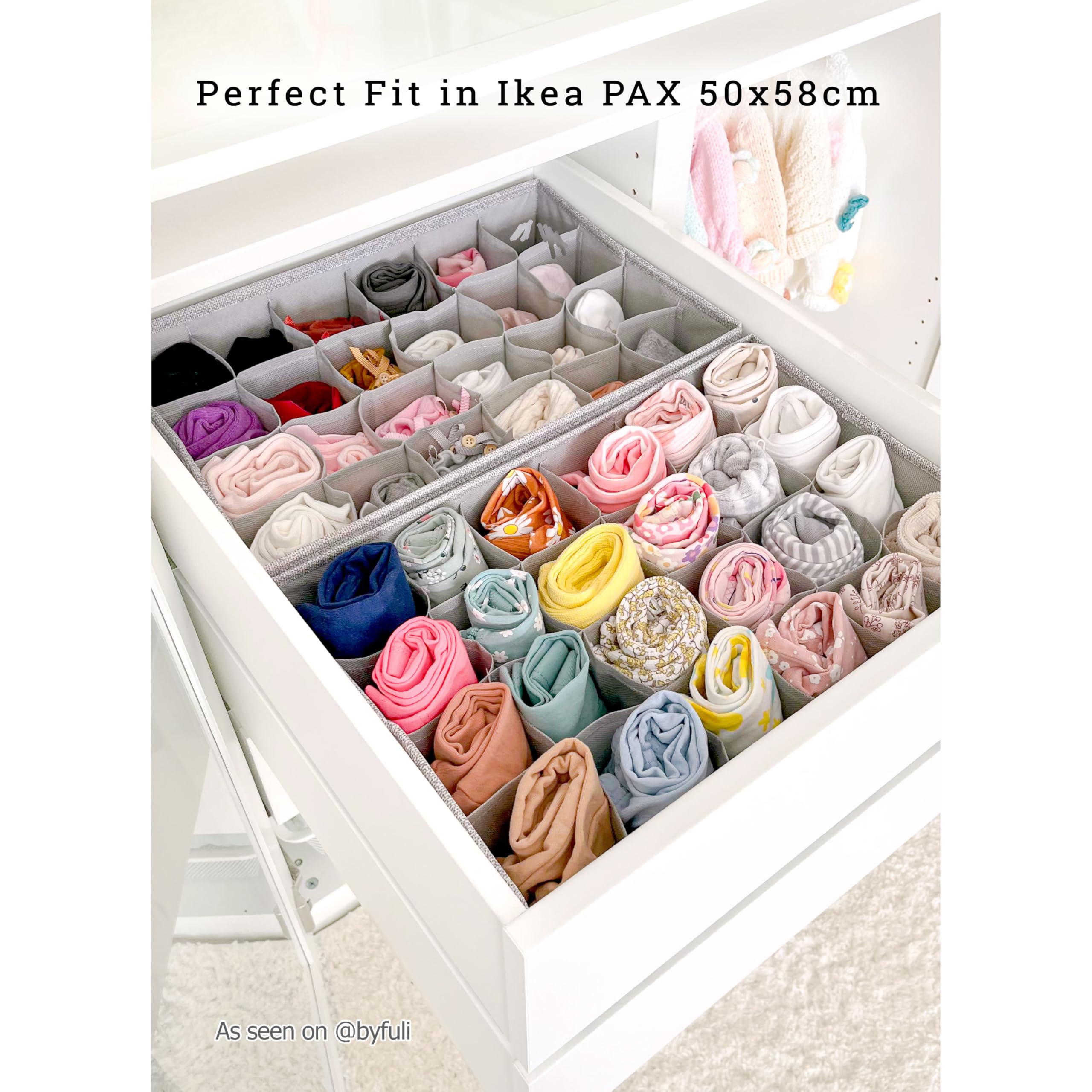 SIMPLE JOY® PAX50 Organizer für ikea Kleiderschrank; DAS ORIGINAL; passgenau; Stabiler Boden; Schubladen Ordnungssystem für Socken, Unterwäsche, Krawatten; 2er Set