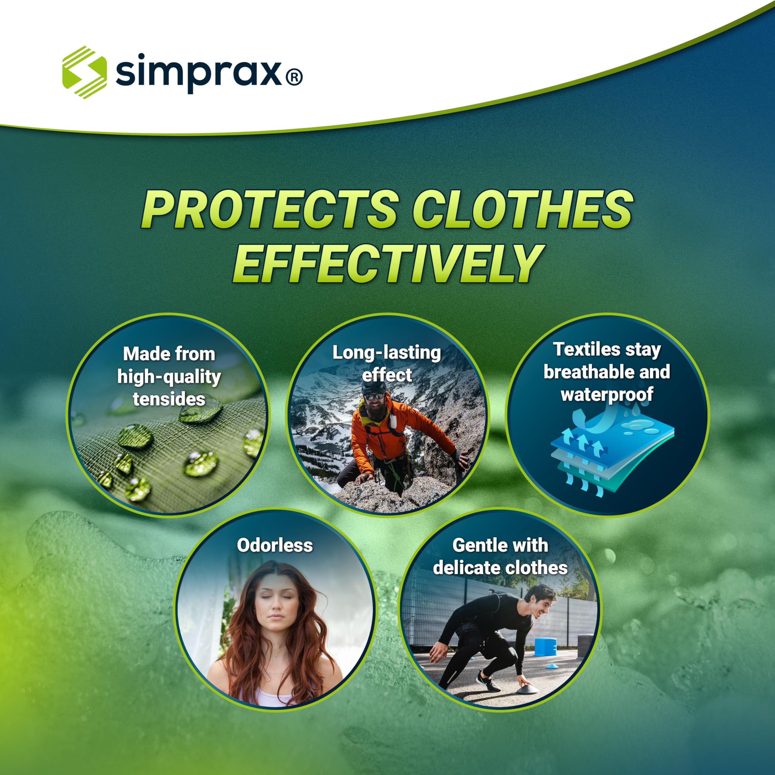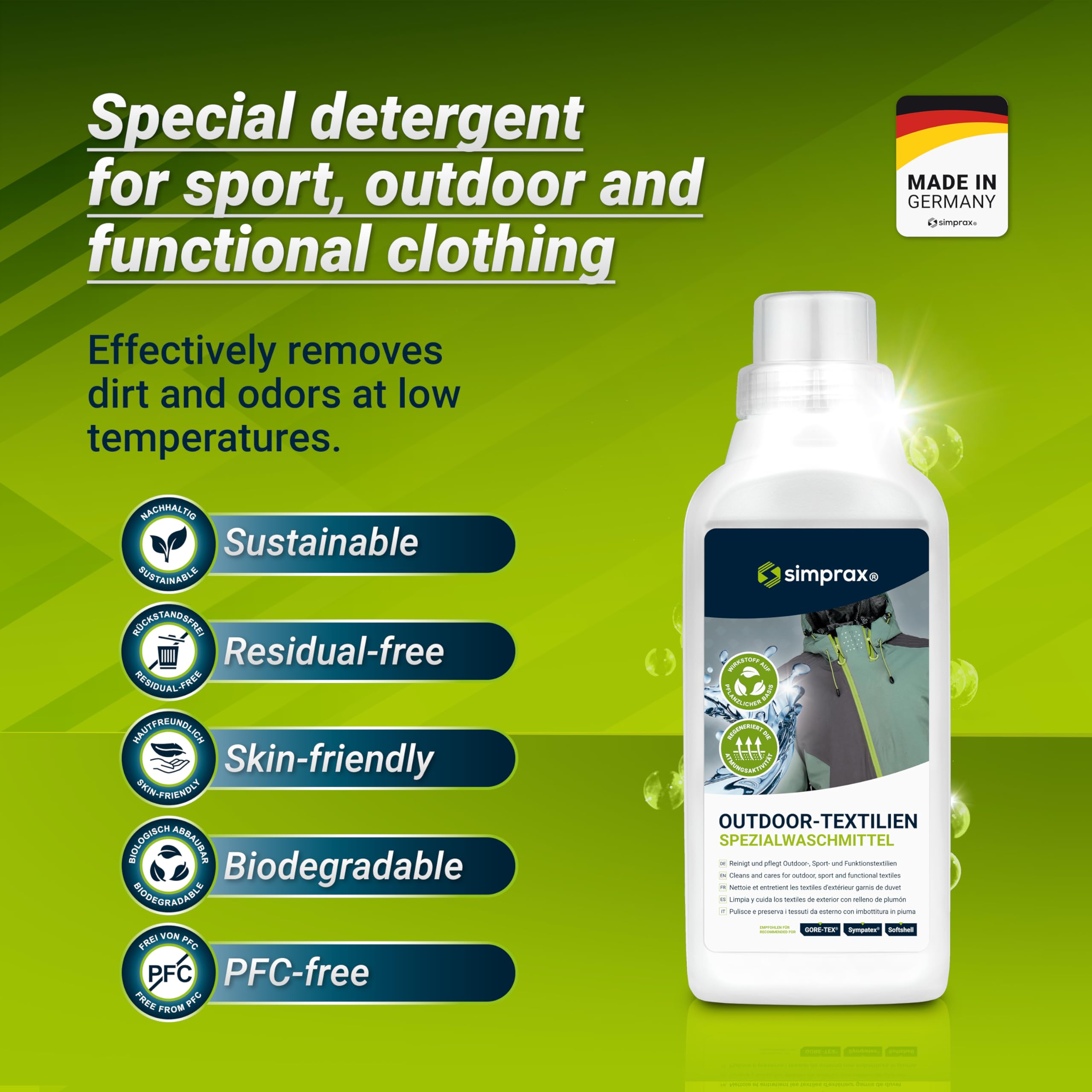 simprax® Funktions- & Outdoorbekleidung Waschmittel als Vorbereitung für wirkungsvolle Imprägnierung I erneuert Atmungsaktivität und effektiv gegen Schmutz, Pflanzenbasiert, Hautverträglich