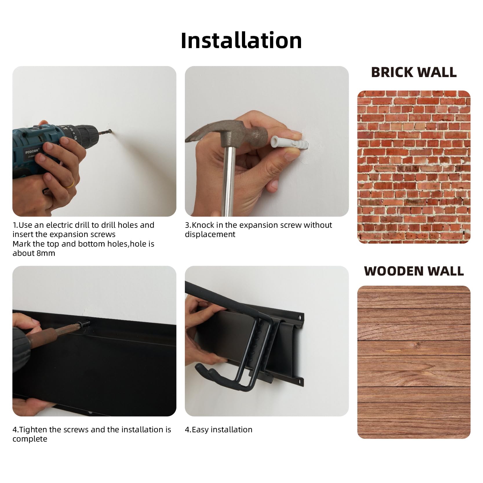 Sinoer Garagen-Werkzeug-Management-Wandregal, Garagen-Wand-Management-Aufbewahrungsregal mit 12 Haken, Kleiderbügel für Skiausrüstung, Gartenwerkzeug, Stuhl, Besen, Mopp, Rechen, Gartengeräte ?? Dieser Werkzeugträger ist mit 4-pulverbeschichteten Schienen mit einer Gesamtlänge von 162,5cm ausgestattet. Es gibt auch 6-doppelte lange Haken, 3-kleine J-förmige Haken, 1-Elektrowerkzeughaken, 2-lange halbrunde Haken (verwendet, um Wasserrohre, schwere Kabel, etc.) und 2-schwere Riemen. Die doppellagigen Stahlhaken sind jeweils 25.4cm lang, die Speicherkapazität um 100%.erhöhen können ?? Die Halterung besteht aus hochfestem Stahl, und alle Haken sind in Gummi gewickelt, um Verrutschen und Beschädigung der Werkzeuge zu verhindern. Langlebig und robust, mit einer Tragfähigkeit von bis zu 500 Pfund, kann es schwere Werkzeuge leicht aufhängen. Korrosionsschutzbehandlung der Oberflächen im Innen- und Aussenbereich, keine Sorge über Alterung durch Sonne und Regen. ?? Dieses Garagenwandwerkzeugregal kann verschiedene Werkzeuge aufnehmen, wie Gartenwerkzeuge, Schaufeln, Rechen, Besen, Seile, Schläuche, Elektrowerkzeuge, Heckenscheren, Schneeschaufeln, Skiausrüstung usw. Alle verstellbaren Haken können an die Schiene angeschlossen und bewegt werden, um Ihre tatsächlichen Bedürfnisse zu erfüllen. ?? Lagerregale können auf fast jeder festen Oberfläche im Innen- oder Aussenbereich installiert werden. Wenn Sie alle Werkzeuge oben aufhängen, ist es einfach, die Garage ordentlich zu halten. Wenn Sie mit der wandmontierten Werkzeugaufbewahrungsbox nicht