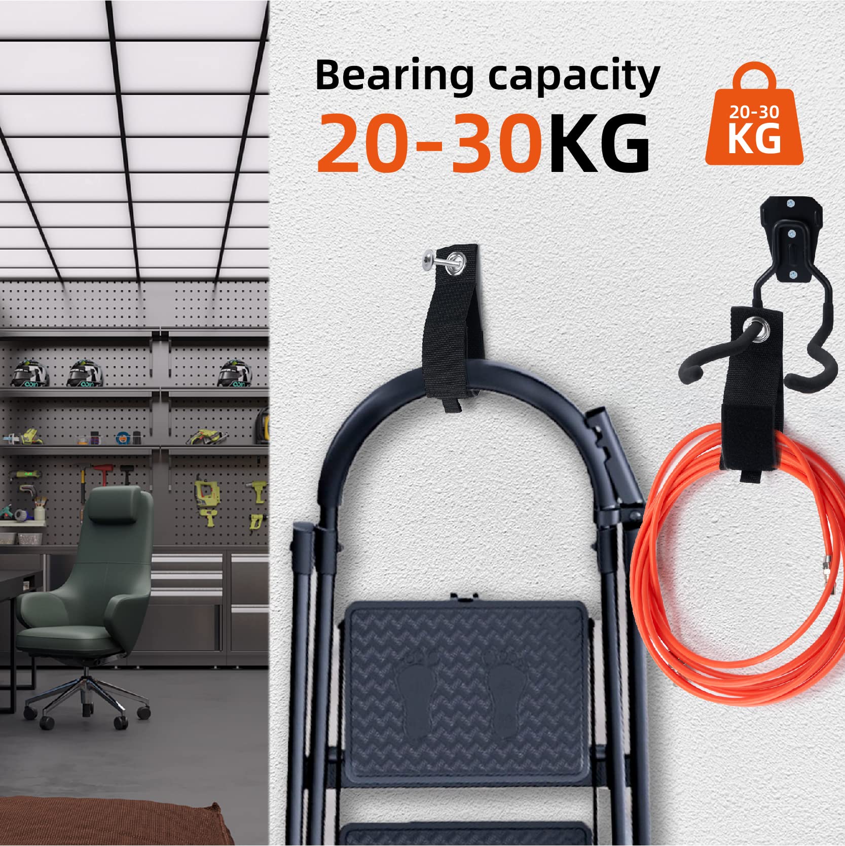 Sinoer Garten-Elektrowerkzeug-Aufhänger, Unkrautfresser-Gestell, Schnurtrimmer, Wandhaken, Garagen-Wandhaken, Utility-Halter-Organizer und Lagerung (2 Stück) hält bis zu 30KG