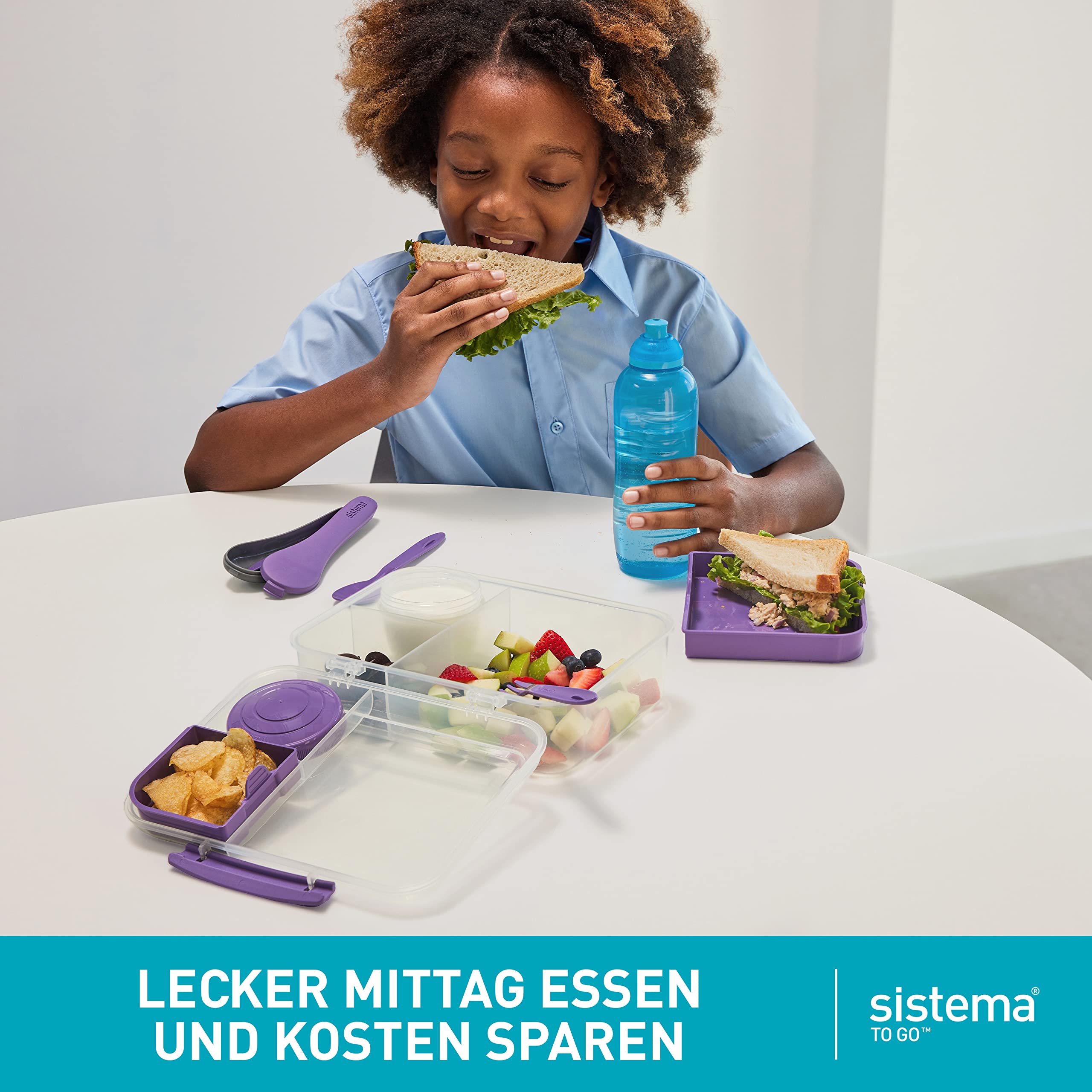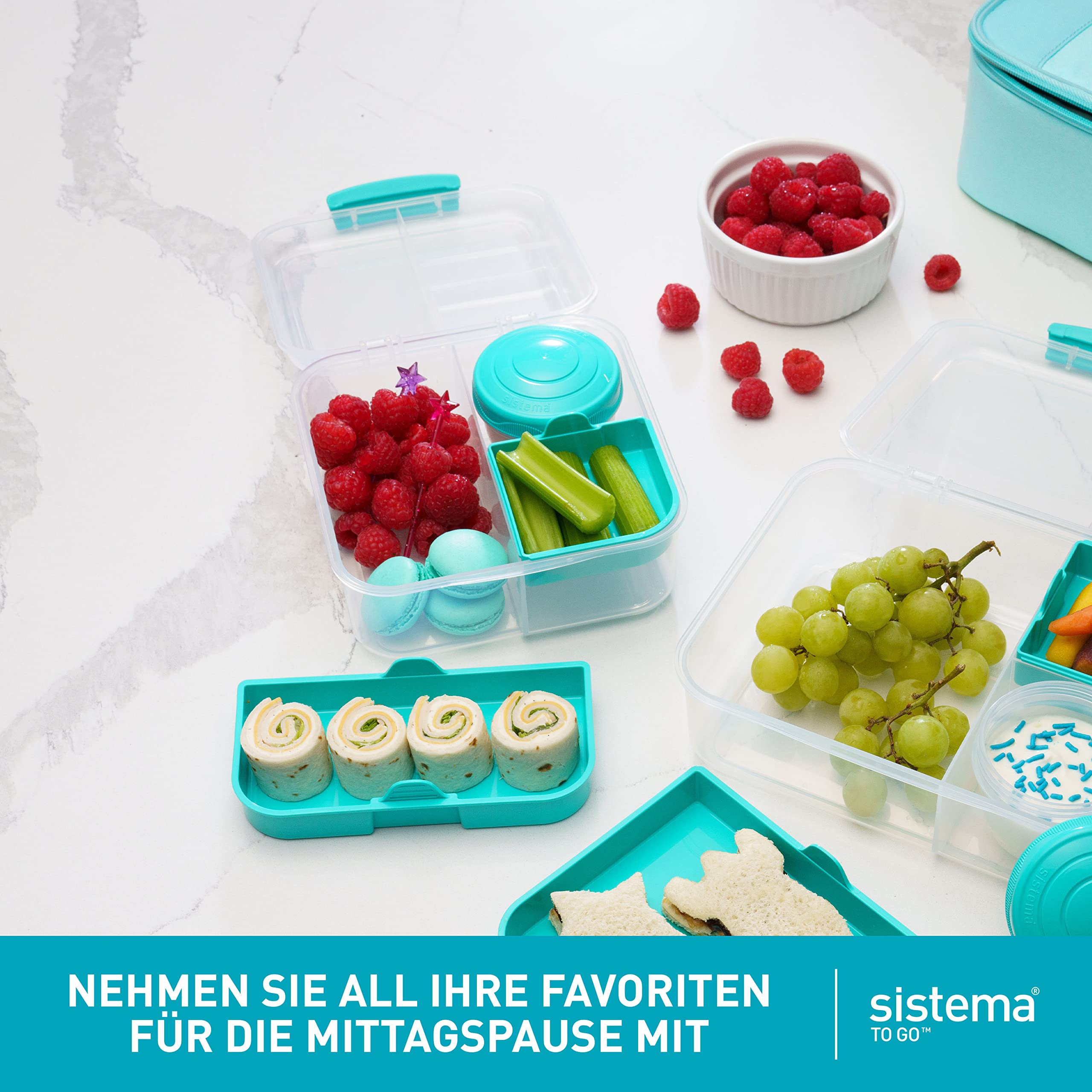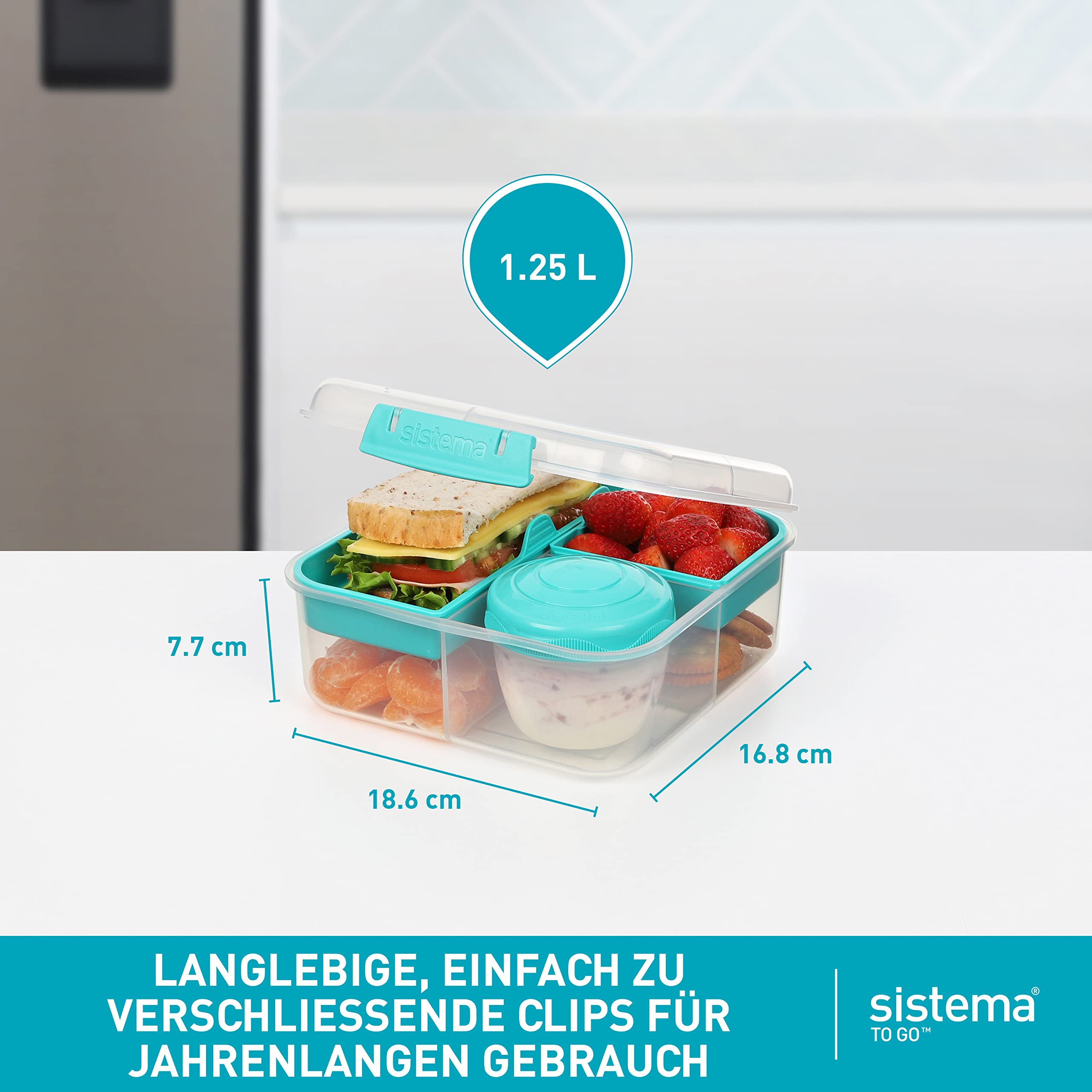 Sistema Bento Box TO GO Brotdose mit Fächern | 1,25 L Lunchbox mit Joghurt-/Fruchtbehälter | Lunchbox Kinder & Erwachsene | Blaugrün