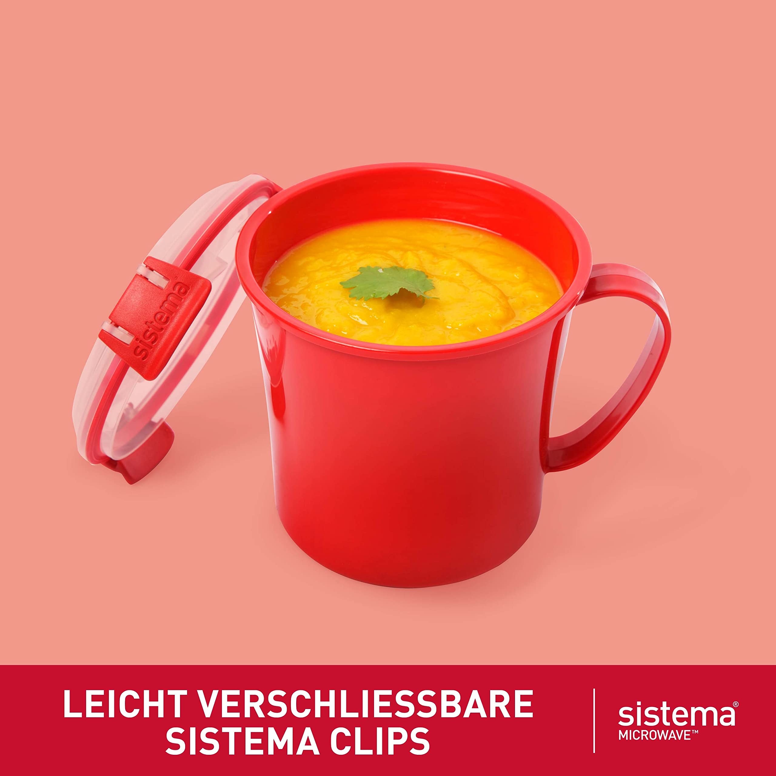 Sistema Microwave Suppentasse, mittelgross | mikrowellenfeste Frischhaltedose | 656 ml | BPA-frei | rot | 3 Stück