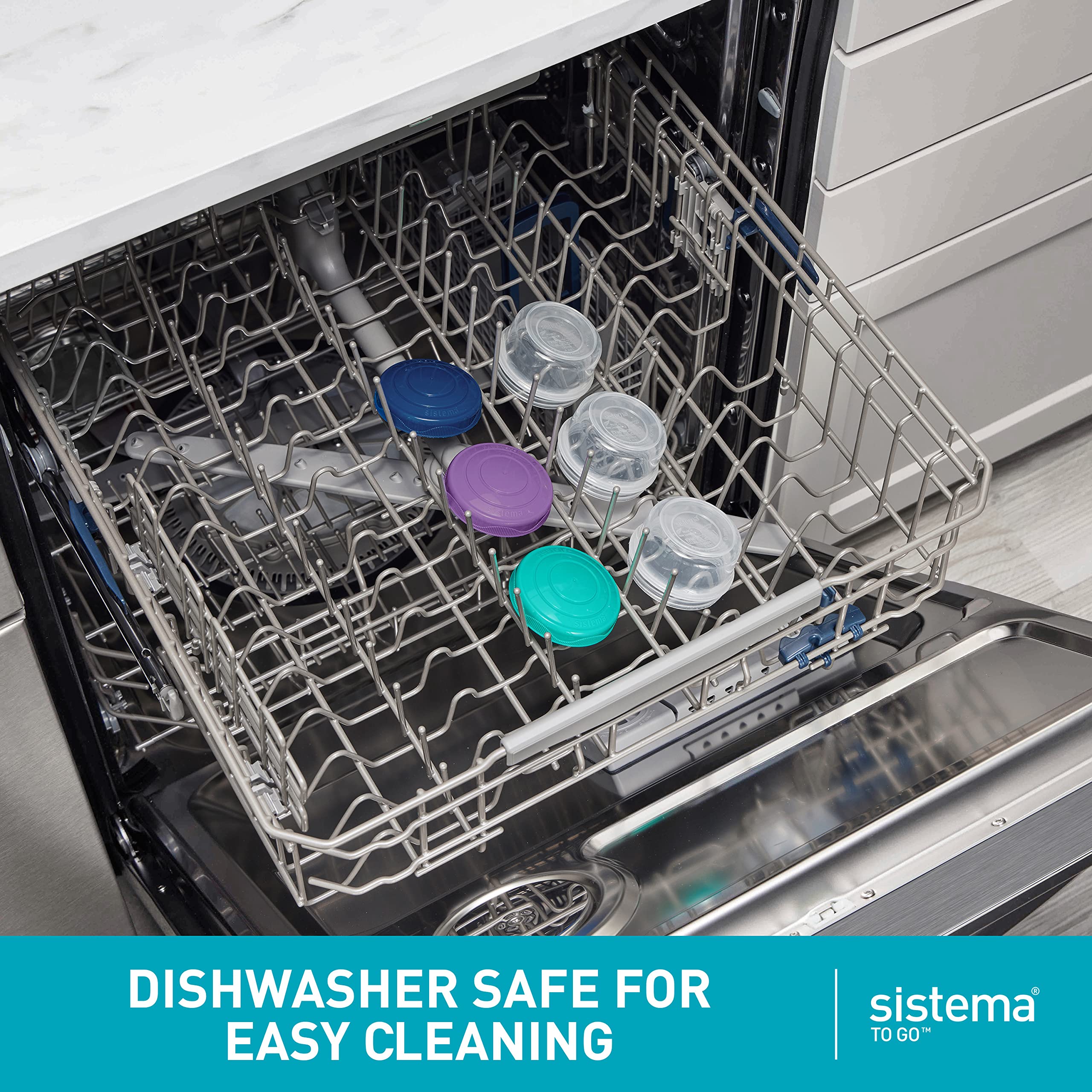 Sistema Mini Bites To Go™ verfügt über stapelbare, dicht schliessende Schraubdeckel und hält Snacks bis zum Verzehr frisch. Dieses Produkt ist stapelbar und spülmaschinenfest (oberstes Fach), mikrowellenfest (ohne Deckel) und geeignet für die Aufbewahrung im Kühl-/Gefrierschrank.