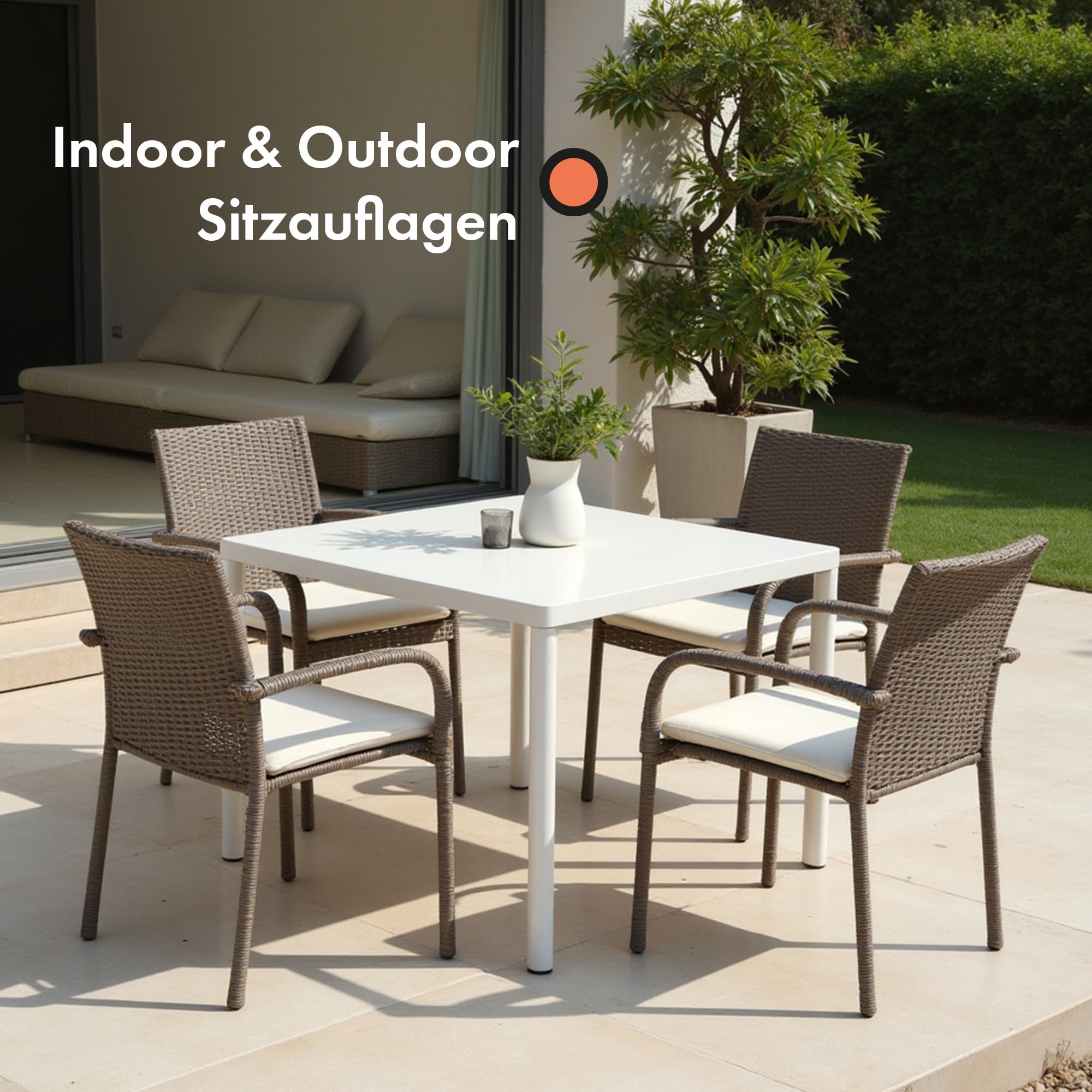 Sitzkissen Stuhl 40x40 cm im 2er Set – Sitzkissen Outdoor mit Memory Foam -Sitzkissen für Indoor & Outdoor Nutzung – Mittelhart H3 Sitzpolster Gartenstuhl Balkon Terrasse (Beige, Eckig 2 Pack)