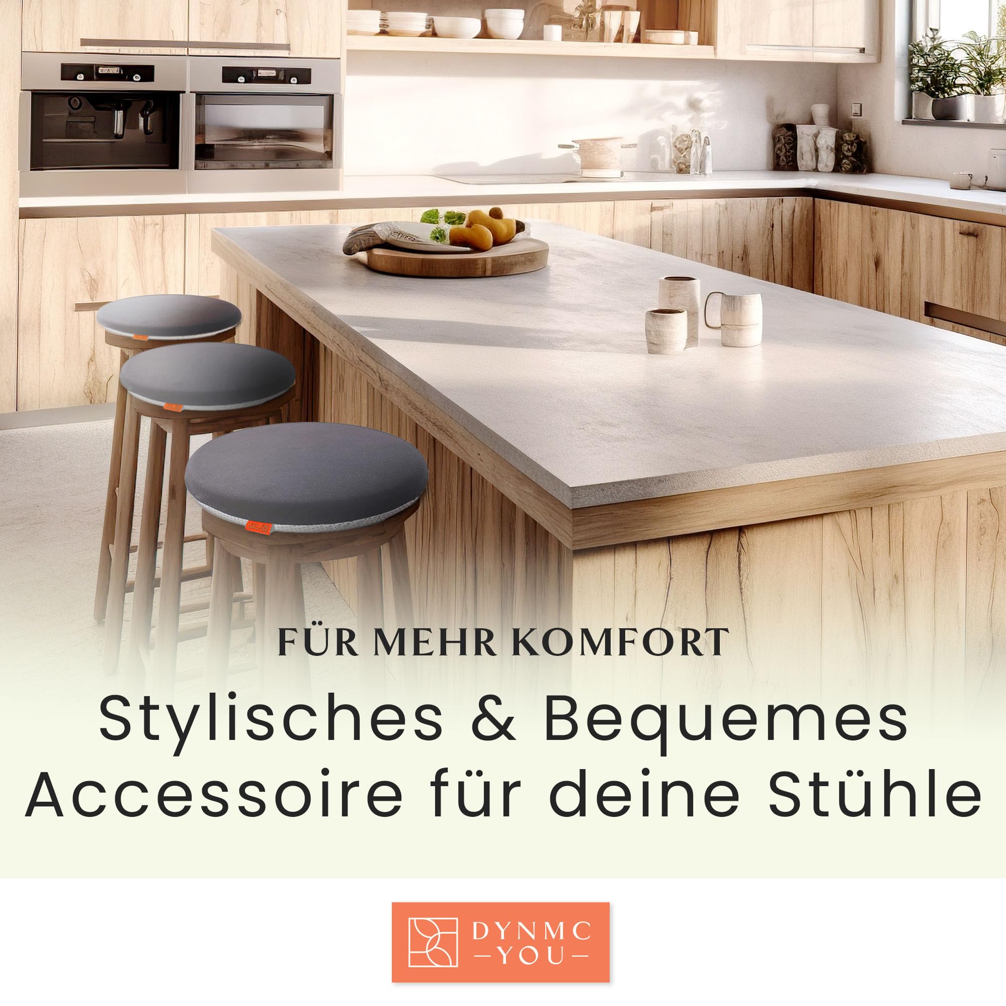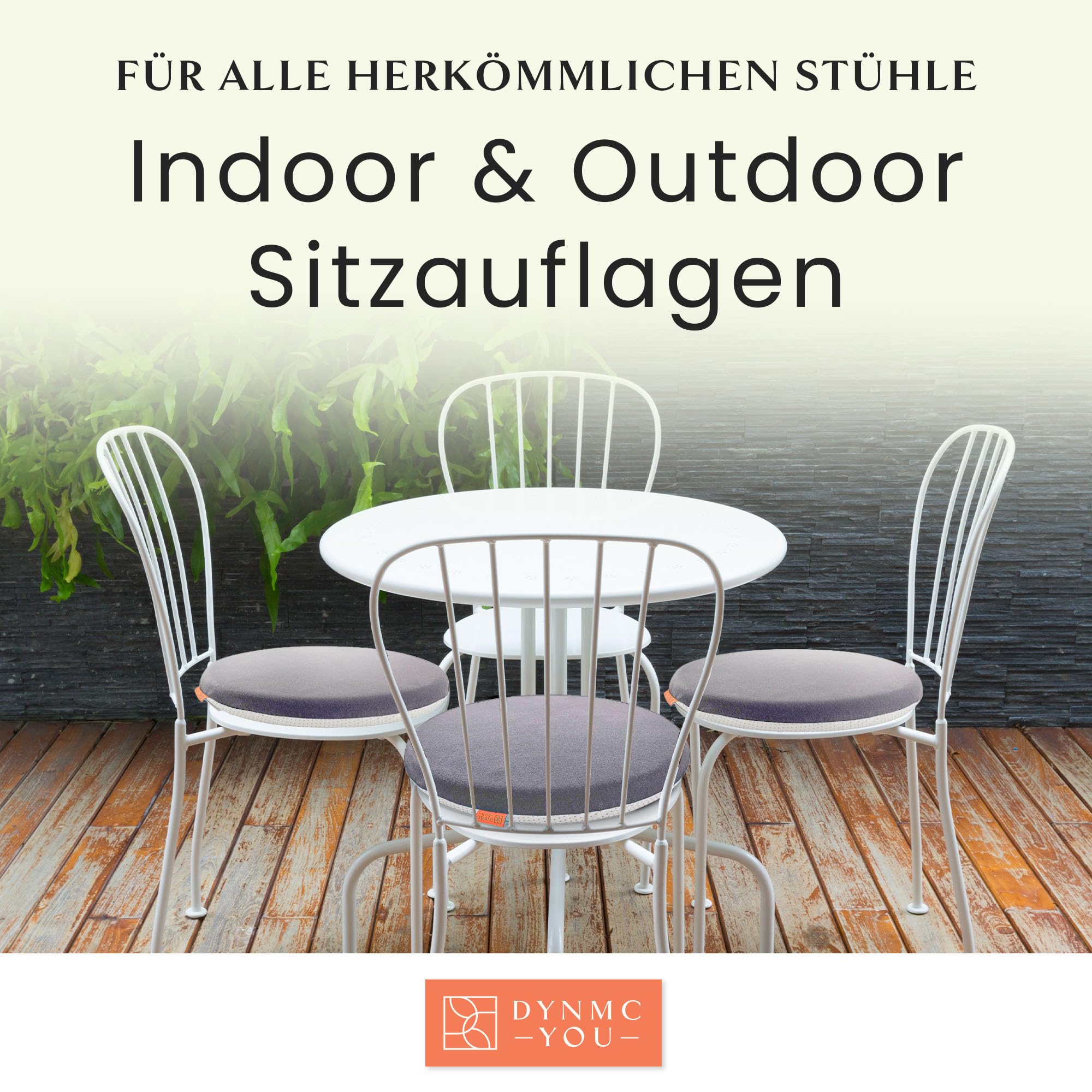DYNMC you Stuhl 40x40 cm im 4er Set – Outdoor mit Memory Foam - Für Indoor & Outdoor Nutzung – Mittelhart H3 Sitzpolster Gartenstuhl Balkon Terrasse – Garten Sitzpolster Grau