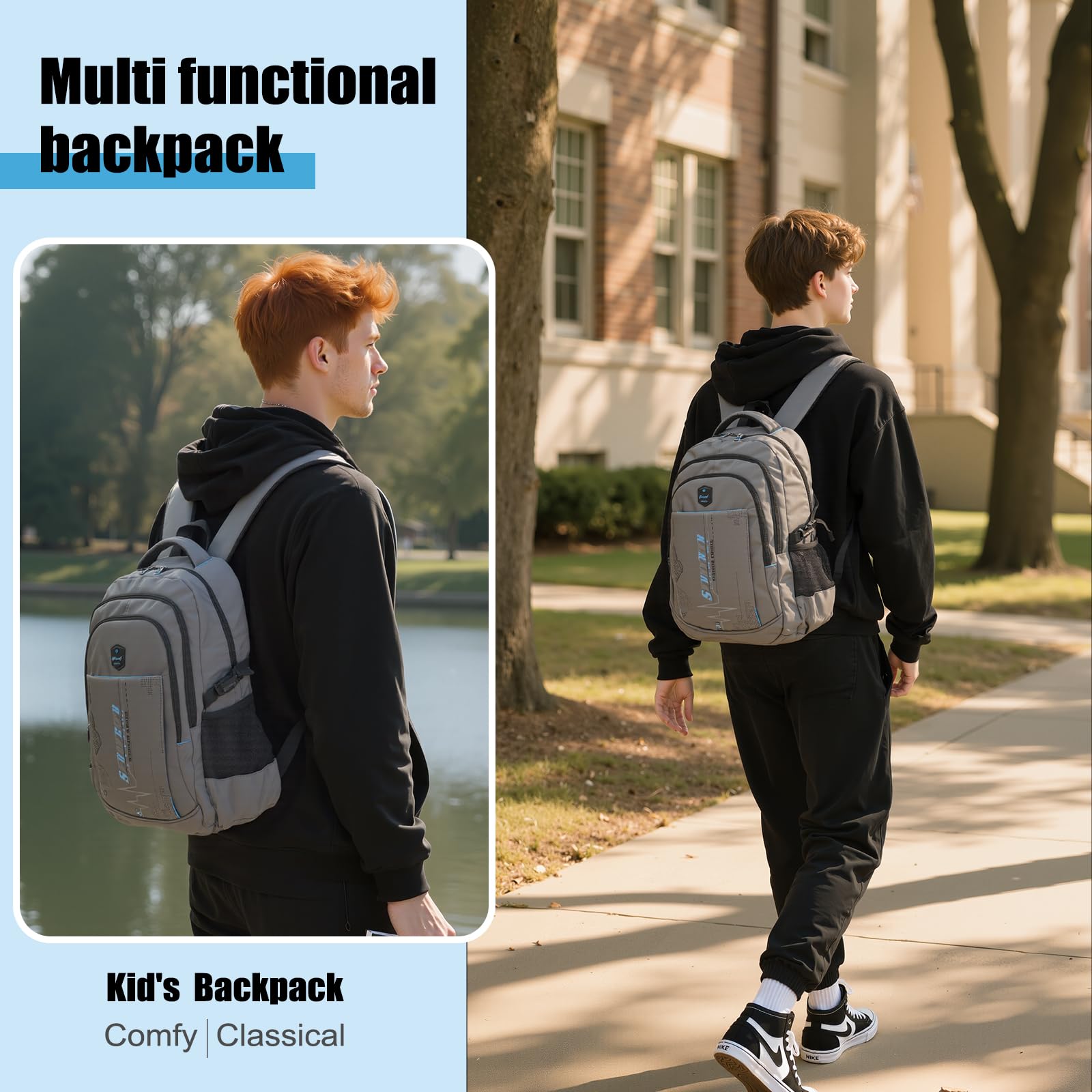 Grosse Kapazität: Masse: 12,2 x 17,5 x 5.1 zoll/ 31 x 44,5 x 13 cm(Länge x Höhe x Breite) Aufbau: 1 grosse Haupttasche mit einem inneren 12-Zoll-Laptopfach und einer kleinen Reissverschlusstasche. 2 medium Taschen mit Reissverschlüssen aber in verschiedener Grösse. 1 Stecktasche vorne 2 seitliche Netztaschen für Wasserflasche oder Regenshirm Unterschiedliche Fäche ermöglichen es, Ihre Dingen wie Bücher, Wasserflasche, Kugelschreiber, 14-Zoll-Laptop, Handy, Ipad, Geldbörse usw. ordentlich zu halten. Robuster Reissverschluss: Hochwertiger Reissverschluss mit Doppelschieber, Die sind ungehindert zu öffnen und schliessen. Hergestellt aus hochwertigem Nylon. Mit Polyesterfutter. Leicht abwischbar. S-Form-Schwammschultergurten in ergonomischem Design und der angenehme Griff, gewährleisten schöne Linien und ein angenehmes Handgefühl. Multifunktioneller Rucksack, ideal für Schule, den täglichen Gebrauch, Shopping, Reisen, Camping, Radfahren, Bergsteigen und Trekking. Gepolsterter Fach für 14 "Laptop / Tablet.
