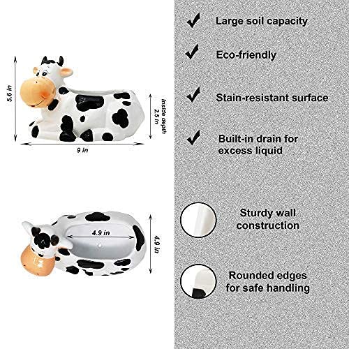 Sixdrop Kuh-Übertopf – 22,9 cm – Kuhdruck Partydekoration – Kuhsachen Garten Hinterhof Blume Keramik Sukkulenten Pflanzgefäss – UFO Kuh Thema Dekoration La Vaca