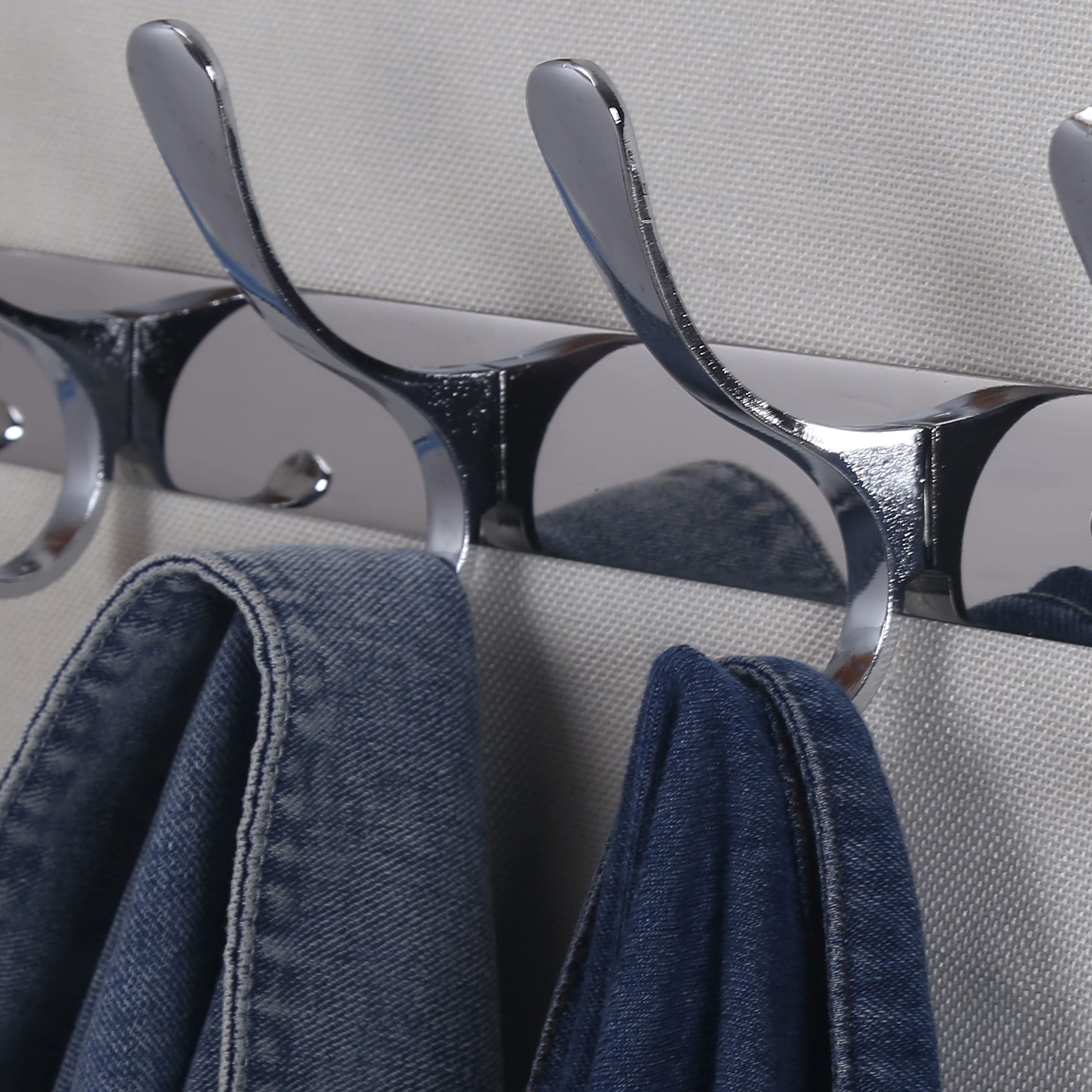 SKOLOO Garderobenleiste, Moderne, stabile Metall Kleiderhaken Wand mit 5 Haken, zum Aufhängen von Kleidung, Mantel, Hüten, Jacken, Rucksack, Hakenleiste Silber, ideal im Zuhause und Büro
