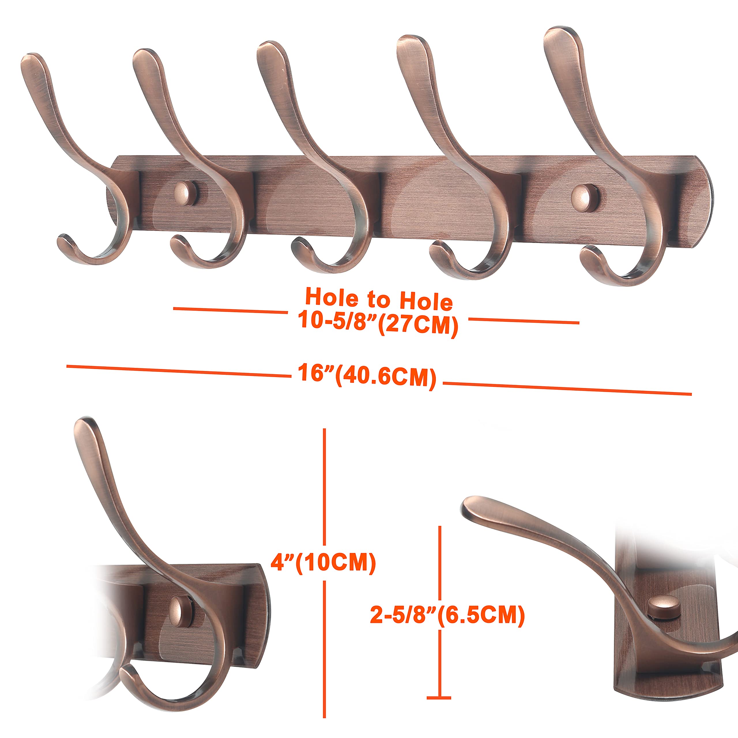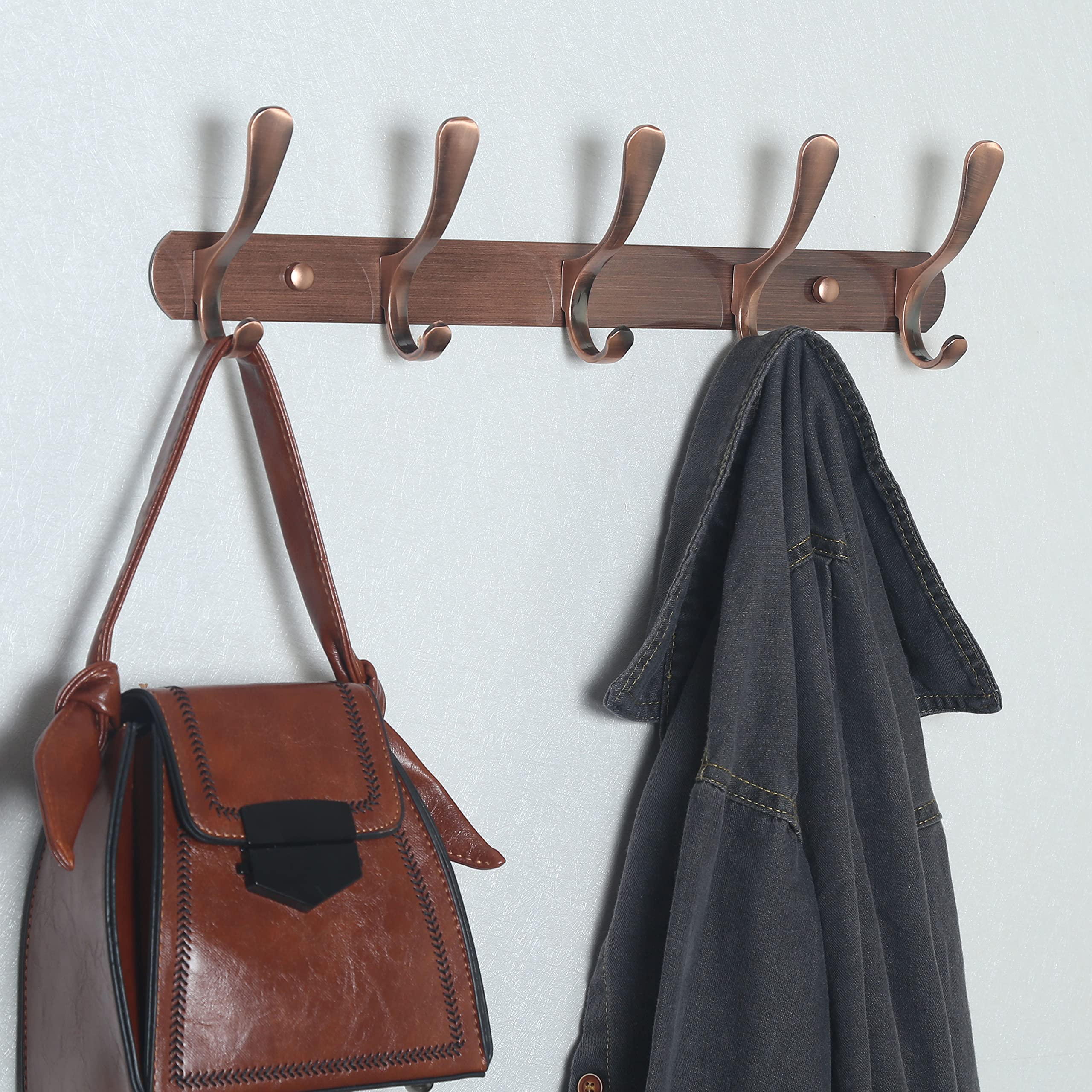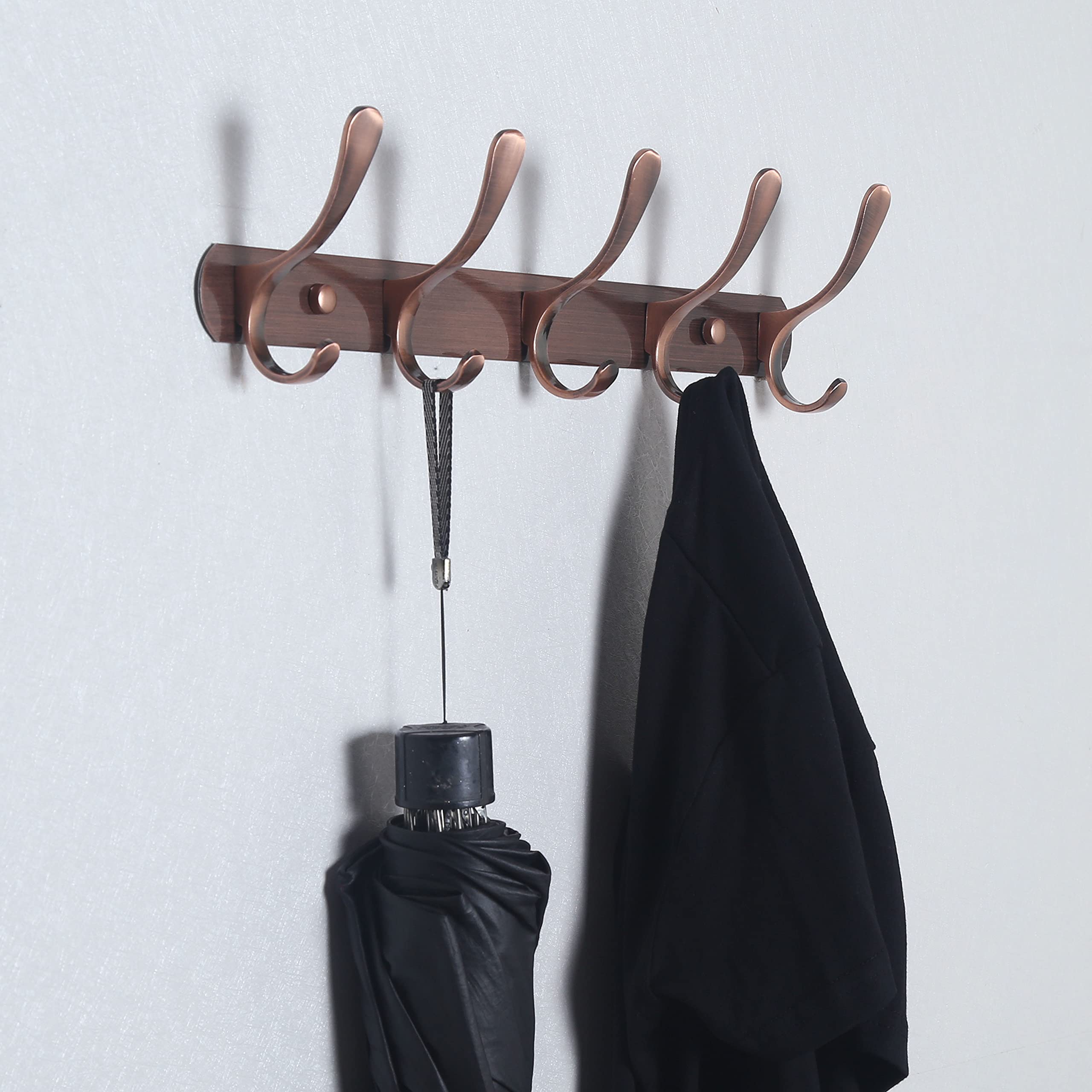SKOLOO Garderobenleiste, Moderne, stabile Metall Kleiderhaken Wand mit 5 Haken, zum Aufhängen von Kleidung, Mantel, Hüten, Jacken, Rucksack, Hakenleiste Retro Rot, ideal im Zuhause und Büro