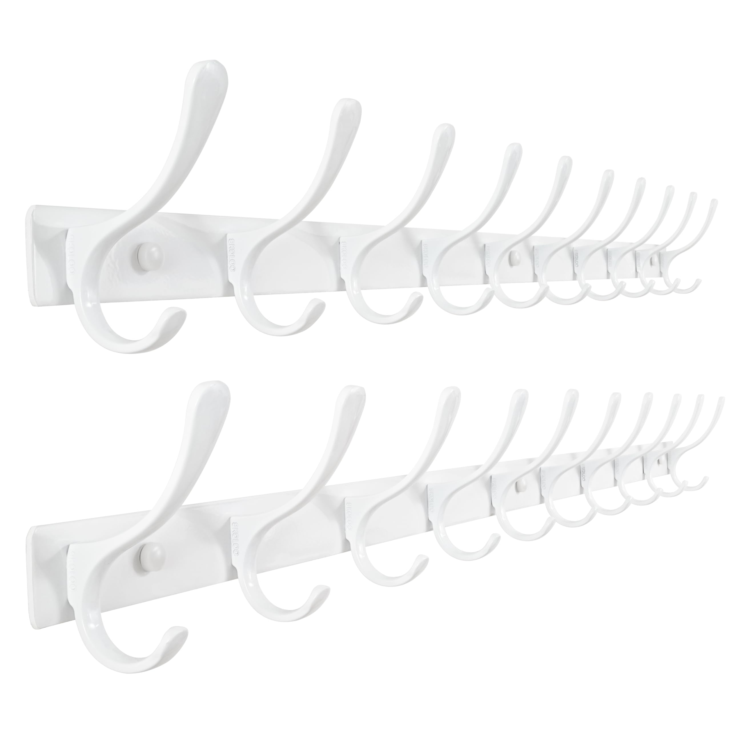 SKOLOO Kleiderhaken wand - 10 Haken, Garderobenleiste Edelstahl(2 Stück), Garderobenhaken Schwere, Metall Hakenleiste, Stabile Hakenleiste zum Aufhängen von Mantel, Jacke, Kleidung, Hut(Weiss)