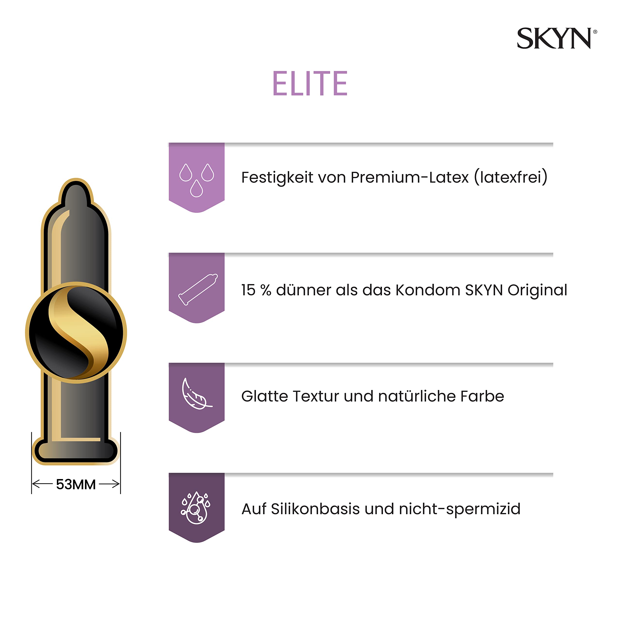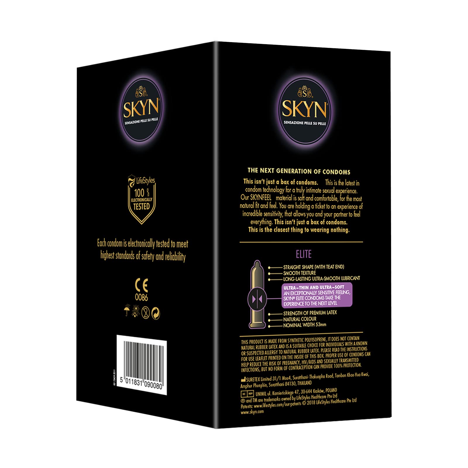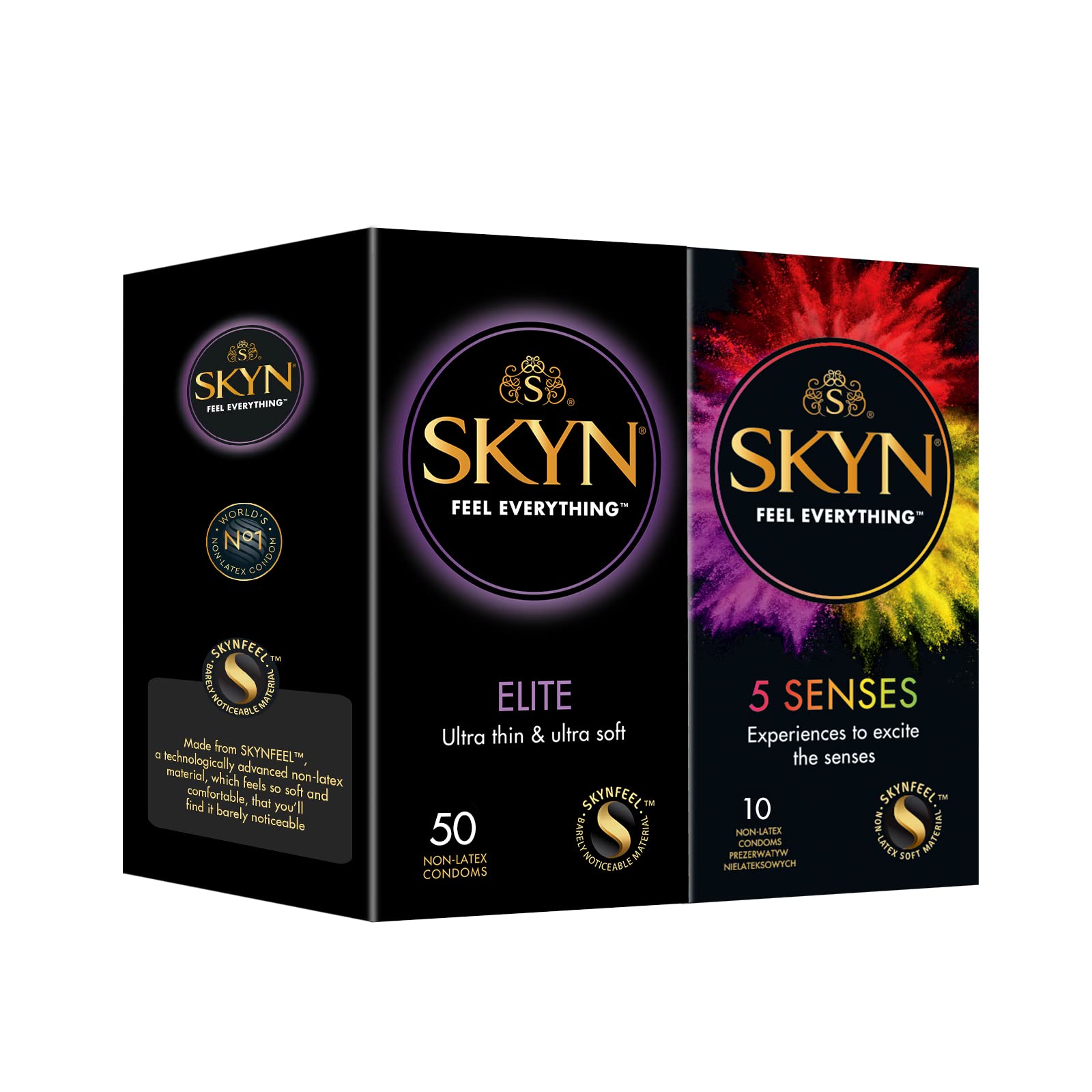 SKYN Elite Kondome (50 Stück) & 5 Senses Kondome (10 Stück) Latexfreie, verendbar mit unser Lube