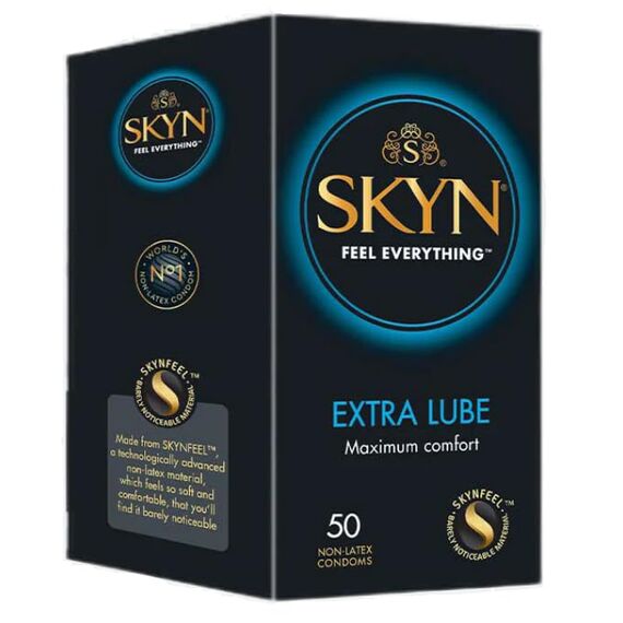 SKYN Extra Lube Kondome 50 Stück - Skynfeel Latexfreie Kondome für Männer, Gefühlsecht Hauchzart, Extra Feucht, Sensitiv, 53mm Breite