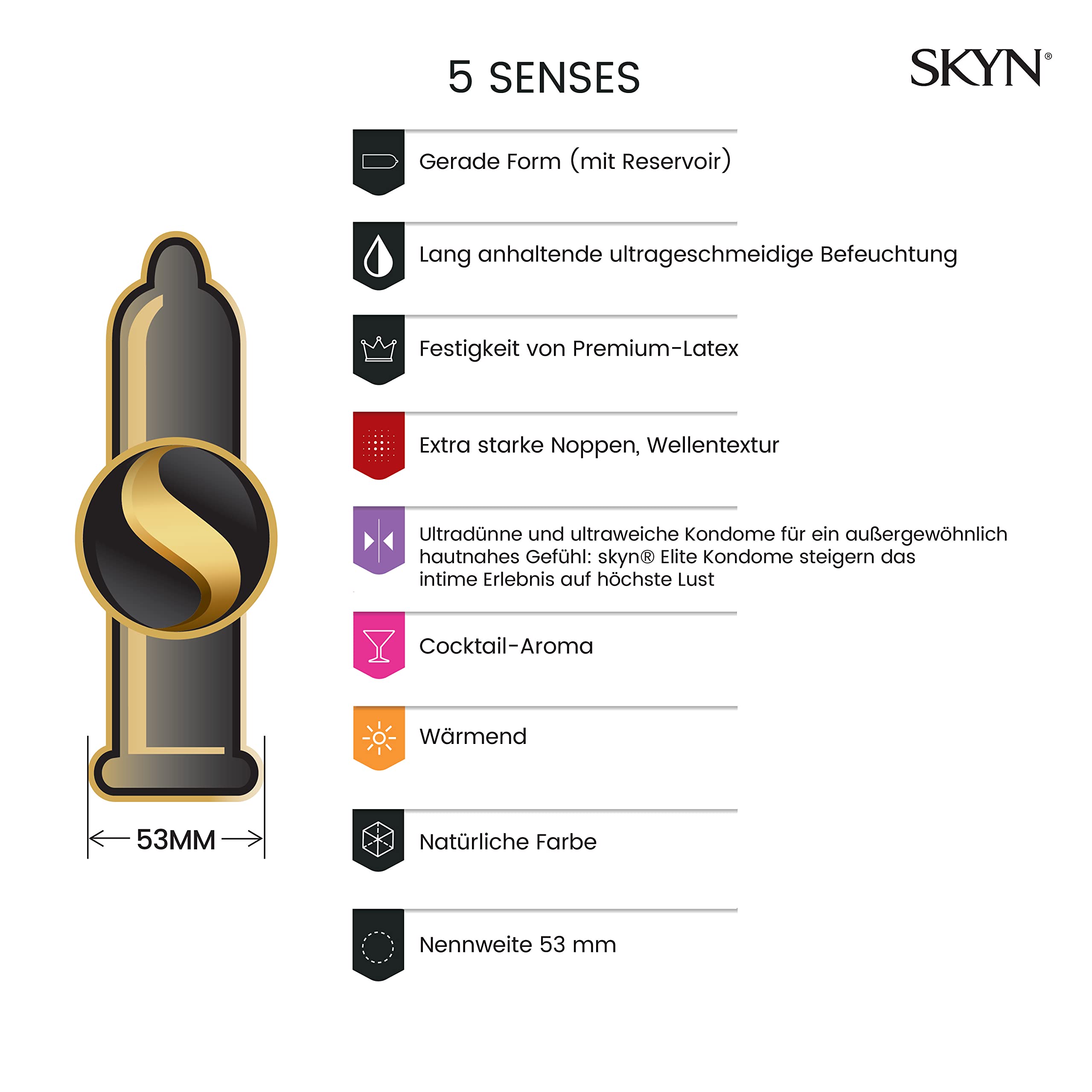 Skyn Kondome 5 senses, (5 stuck) Latex frei Kondome, mit unsere Lubes verwendbar, 53mm breite