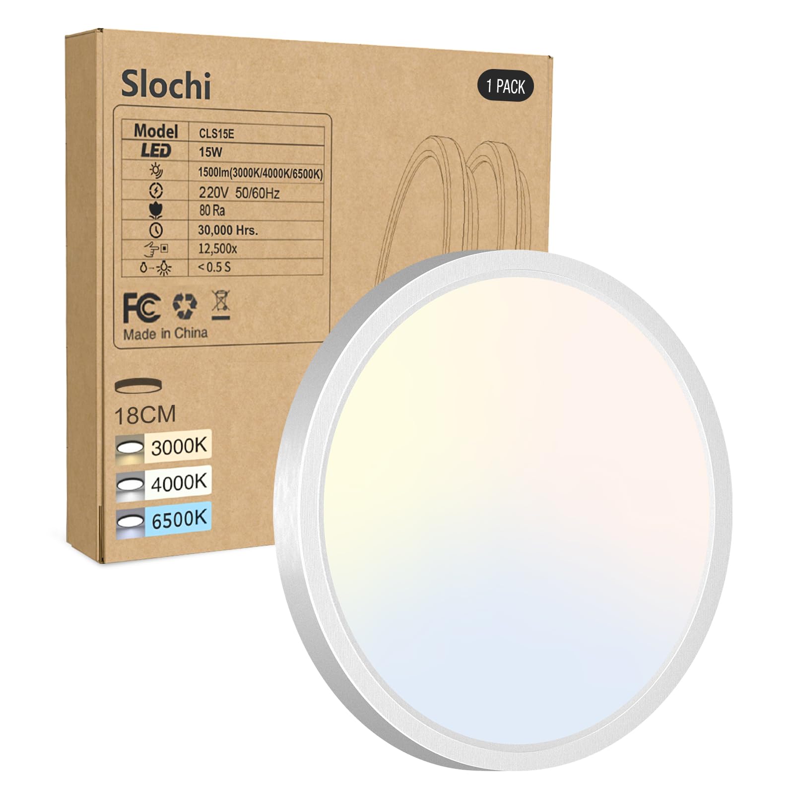 slochi Deckenlampe LED Deckenleuchte Flach, 3Farben - 3000K/4000K/6500K, Wasserfest Rund Badlampe Decke, 1500LM Modern LED Lampen für küche Badezimmer Schlafzimmer Flur Wohnzimmer, Ø18CM Nickelfarbe
