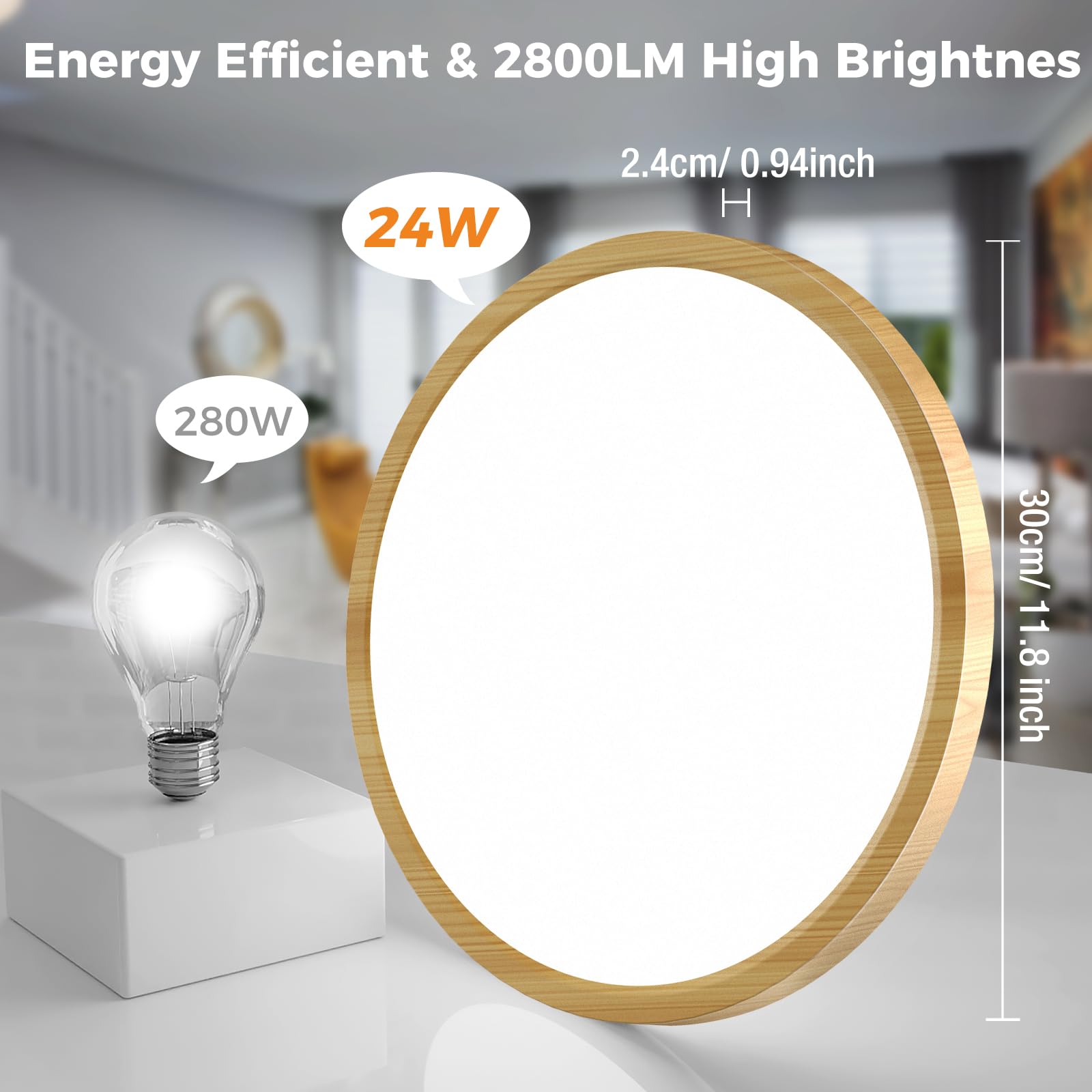 - 【Energiesparend und lange Lebensdauer】 Die 30CM rund deckenleuchte kann mit nur 24 W eine Helligkeit von 2800 Lumen erreichen, was die beste Wahl für Energiesparlampen ist. Die LED-Leuchte aus hochwertigem feuerfestem Kunststoff gefertigt. Diese LED lampen hat eine Lebensdauer von bis zu 25.000 Stunden, was super energiesparend und sicher in der Anwendung ist