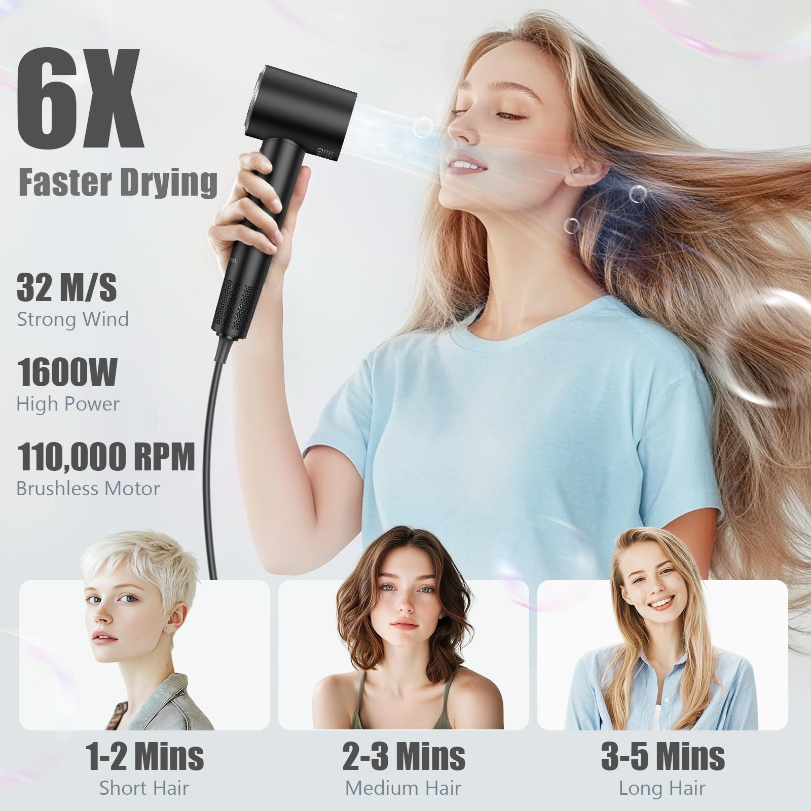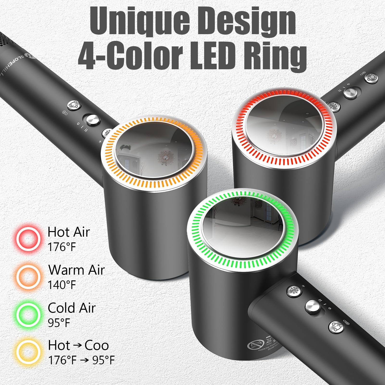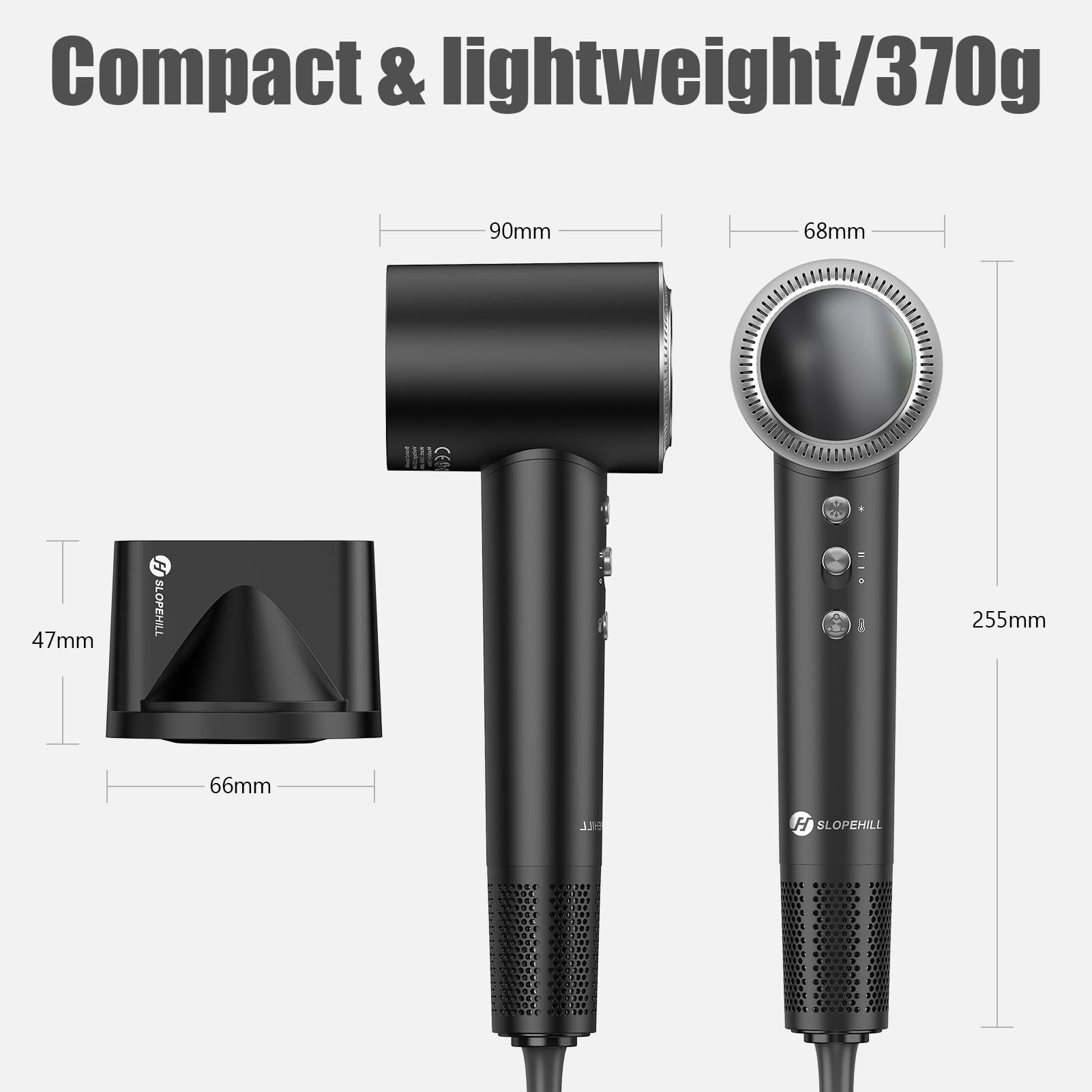 slopehill Haartrockner, 200 Million Ionen Föhn mit Diffusor und Düse, 110.000 U/min Fön Bürstenloser Motor, Schnelles Trocknen, 57db Reisefön Klein Leise Leicht, Professioneller Haarföhn für Zuhause