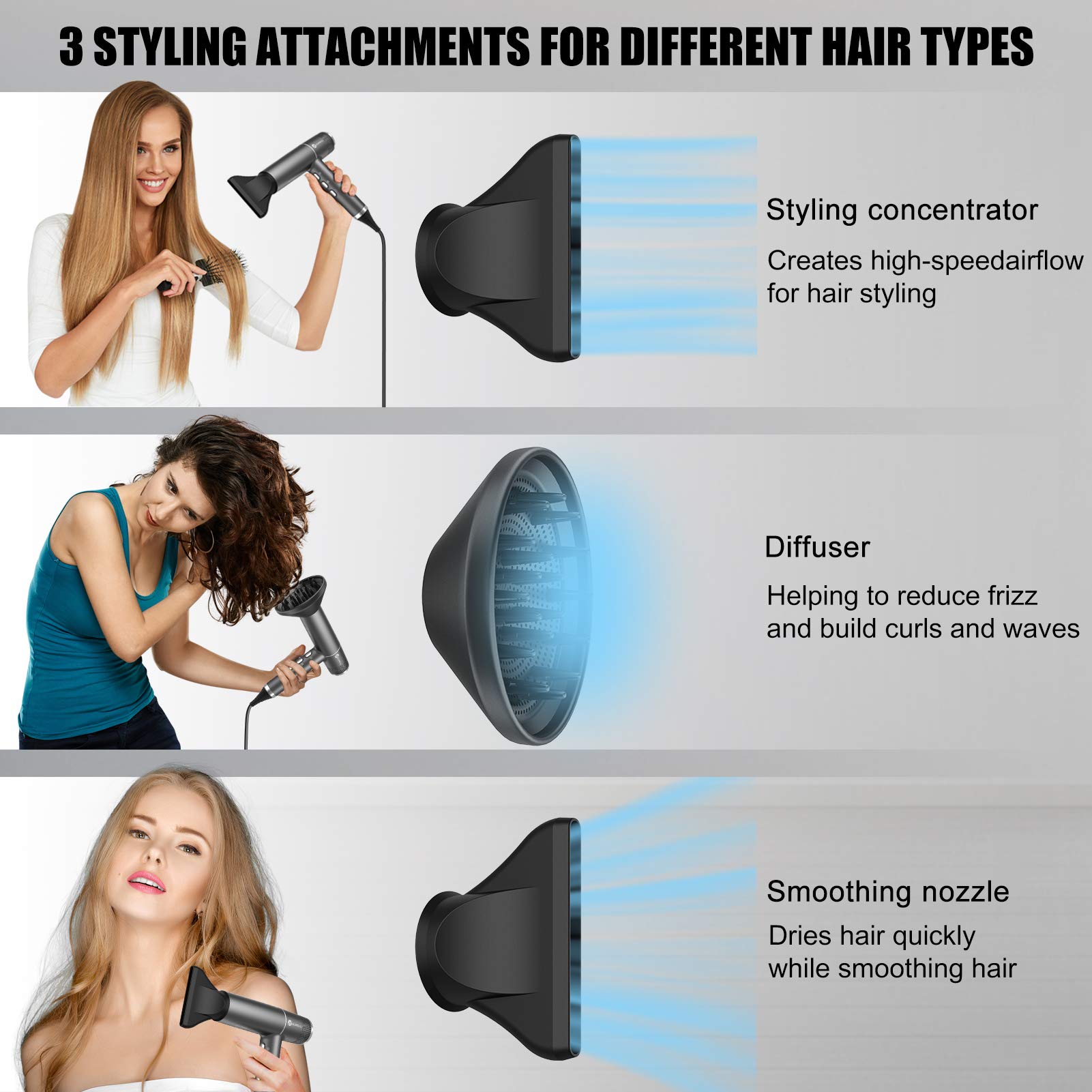 slopehill Haartrockner mit einzigartigem bürstenlosem Motor | Intelligente Fehlerdiagnose | Innovativer Mikrofilter | Oxy Active Technology | LED-Anzeige | 268g Superleicht, 2000W (Grau)