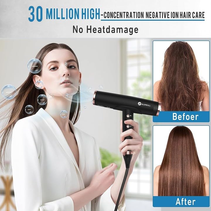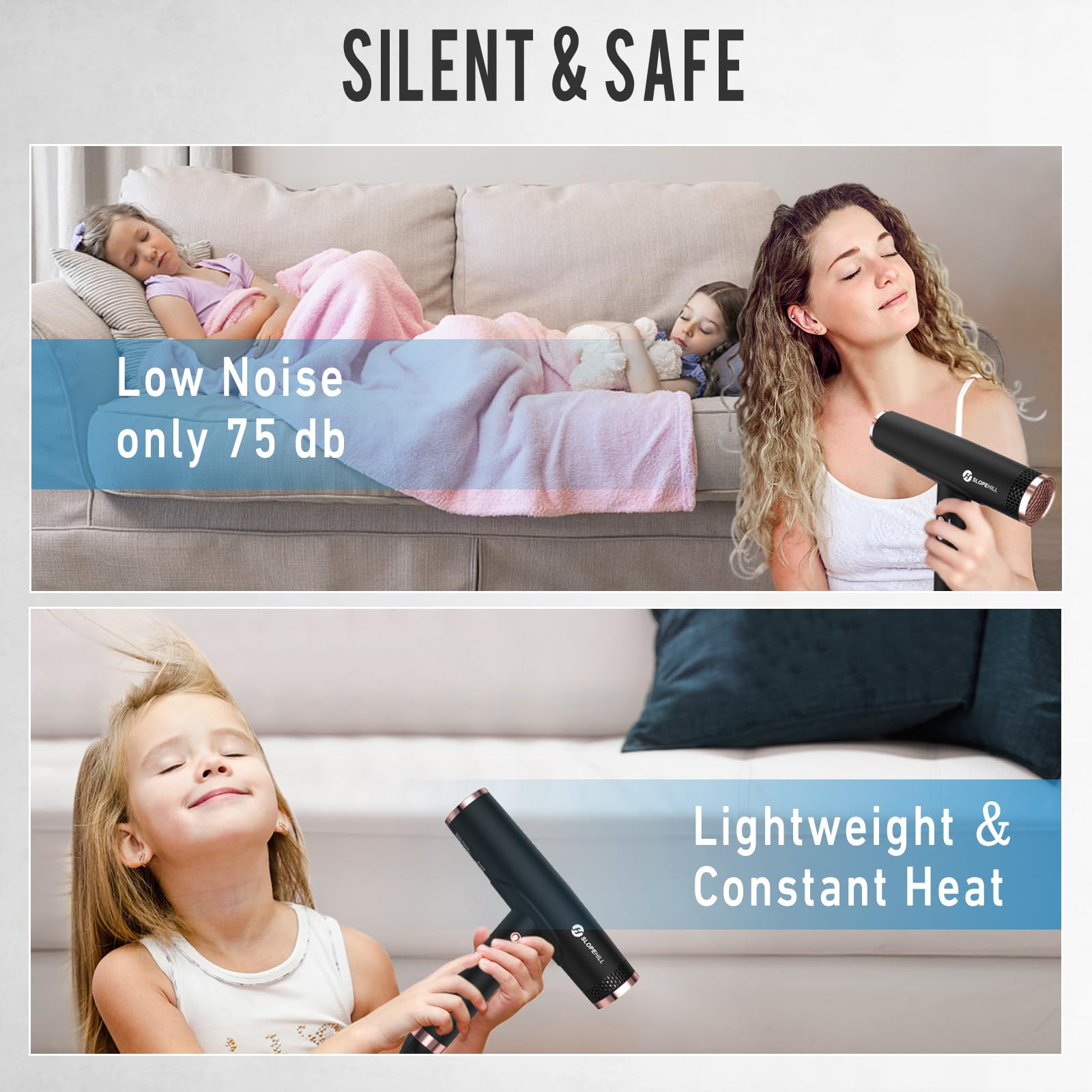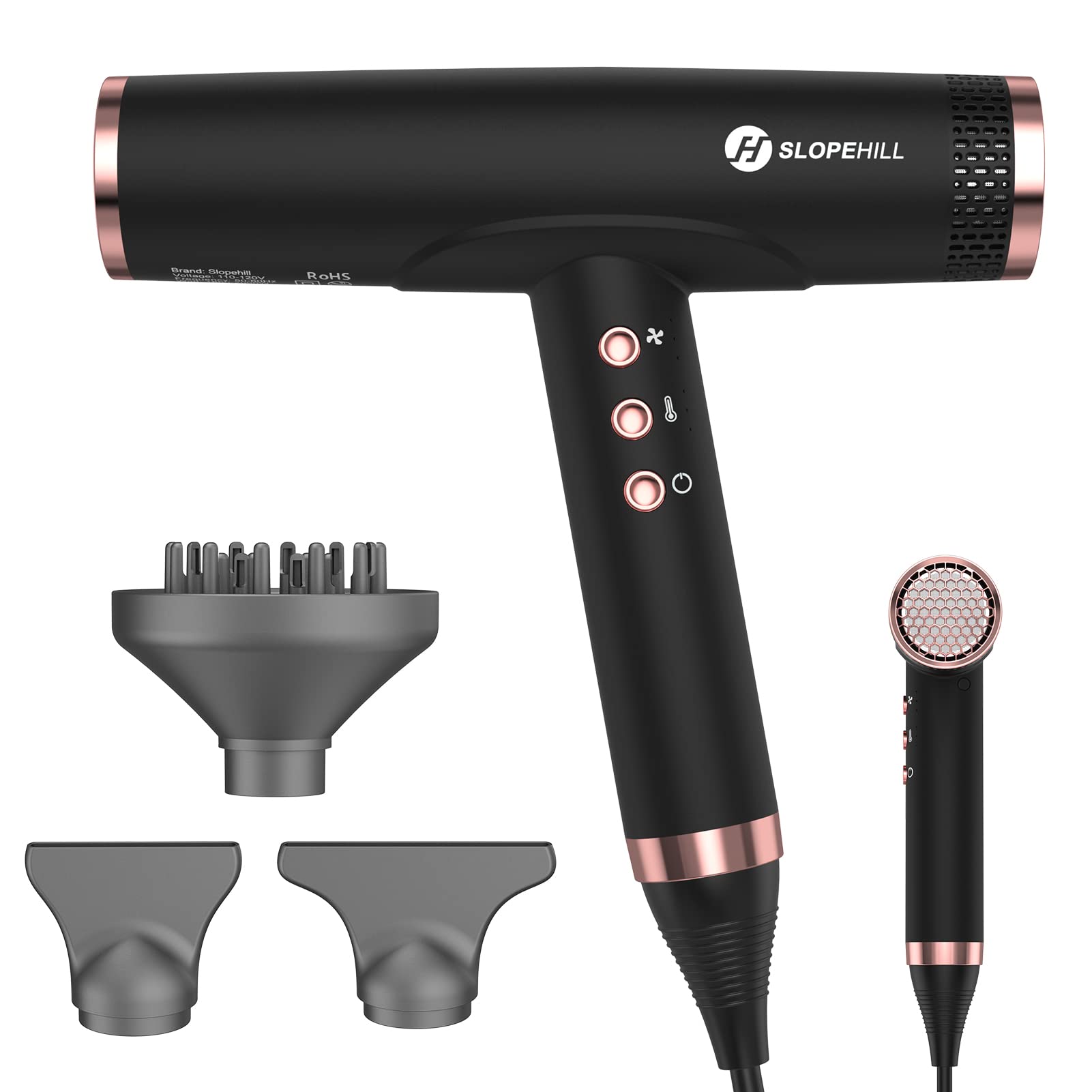 slopehill Ionen Haartrockner, 110,000RPM Bürstenloser Motor Schnelles Trocknen Föhn mit Magnetischer Diffusor, Wenig Lärm/Biokeramische Technologie, für Zuhause, Reisen, Salon (Mattschwarz) 2