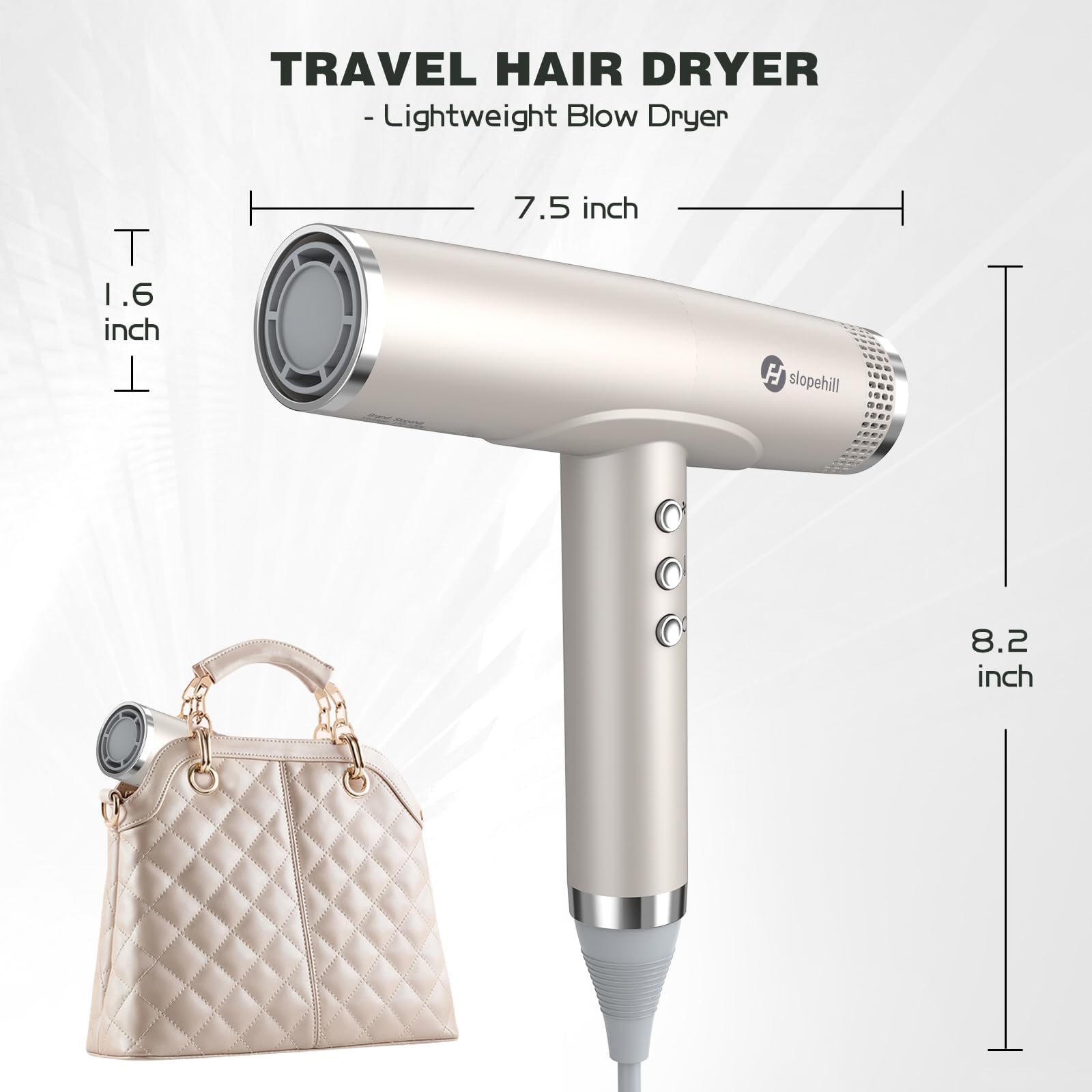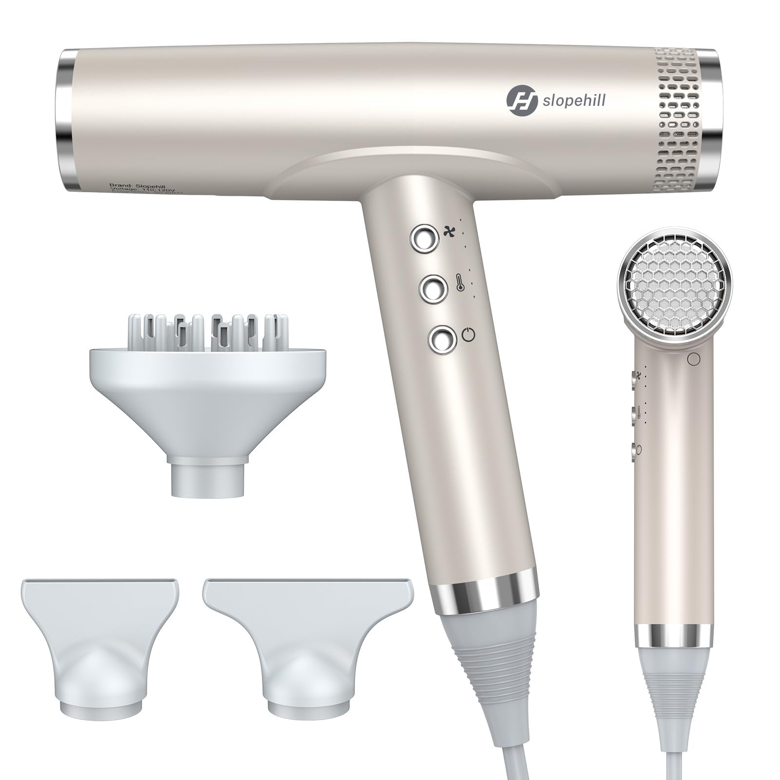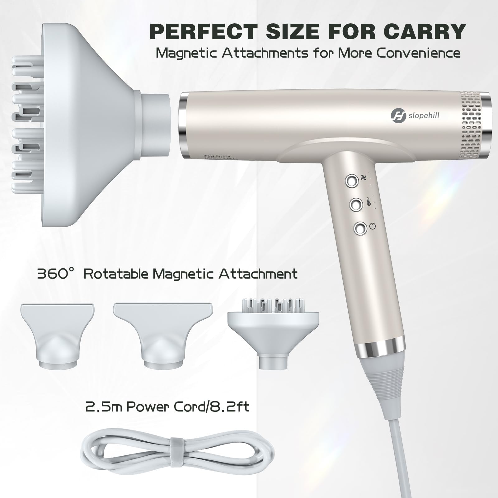 slopehill Ionen Haartrockner, 110,000RPM Bürstenloser Motor Schnelles Trocknen Föhn mit Magnetischer Diffusor, Wenig Lärm/Biokeramische Technologie, für Zuhause, Reisen, Salon (Champagne Gold)