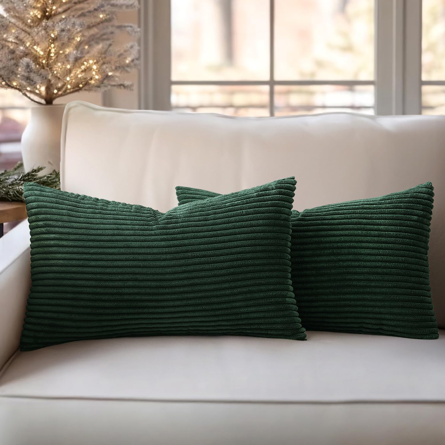Slozzi 2er Set Kordsamt Kissenbezug Dunkelgrün 30x50 Kissenbezüge Kissenhülle Sofakissen Dekokissenbezug Couchkissen Weich für Sofa Schlafzimmer Wohnzimmer Balkon